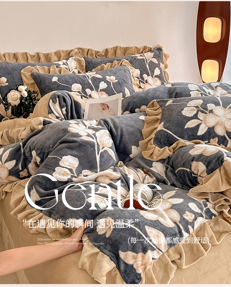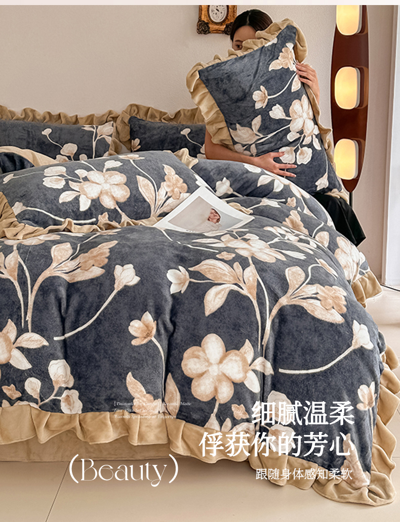 亿品2025新款直播爆款韩版赫本风高克重牛奶绒四件套床裙款 8.5斤(有买家秀加v) 花语,花语