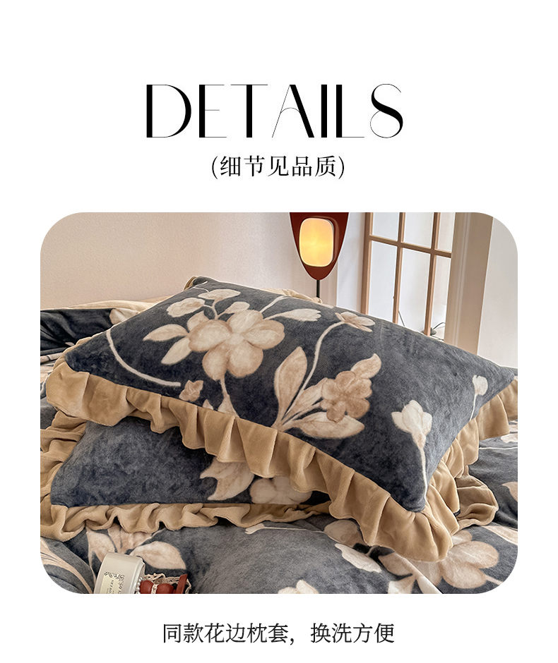 商品名称:亿品2025新款直播爆款韩版赫本风高克重牛奶绒四件套床裙款 8.5斤(有买家秀加v) 花语