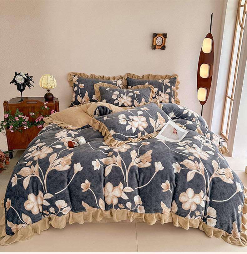 亿品2025新款直播爆款韩版赫本风高克重牛奶绒四件套床裙款 8.5斤(有买家秀加v) 漫花飞舞,漫花飞舞