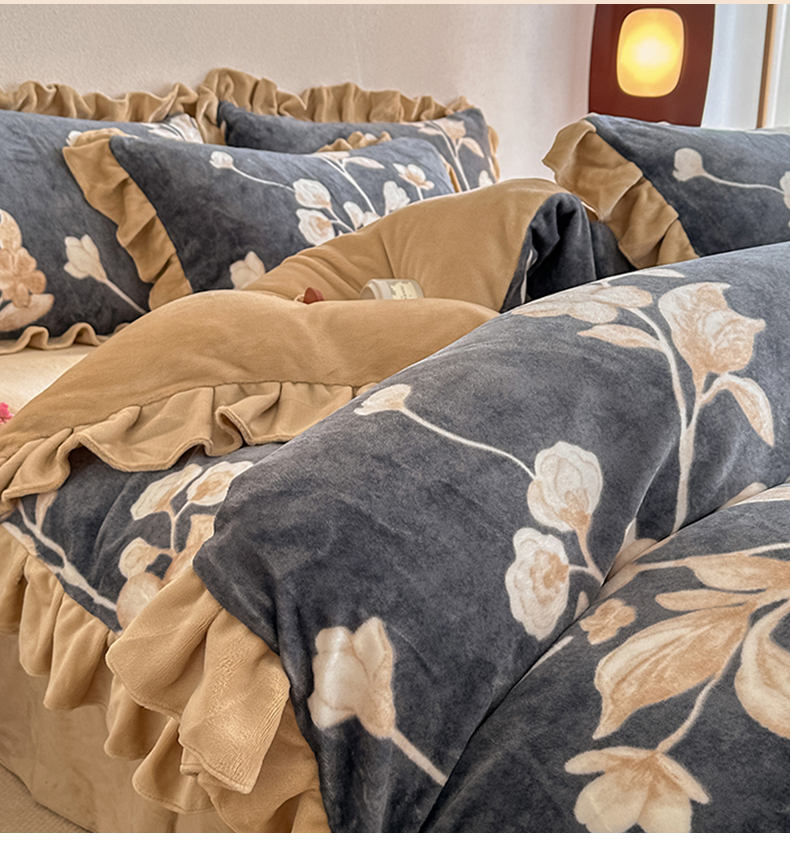 亿品2025新款直播爆款韩版赫本风高克重牛奶绒四件套床裙款 8.5斤(有买家秀加v) 花边紫韵,花边紫韵