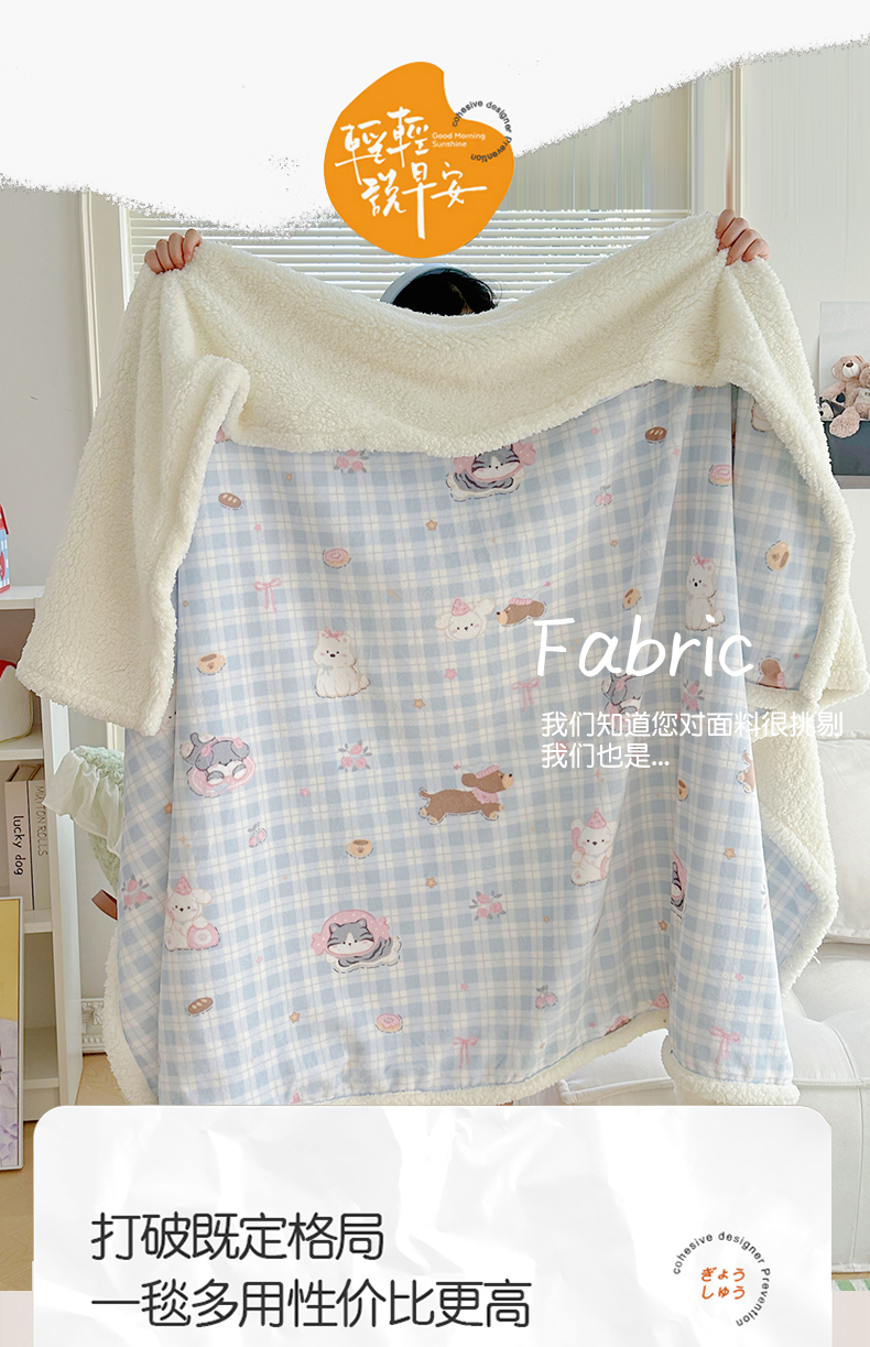 萝莉家纺 2025新款小清新多功能牛奶绒羊羔绒毛毯毯子午睡毯 猫狗一家