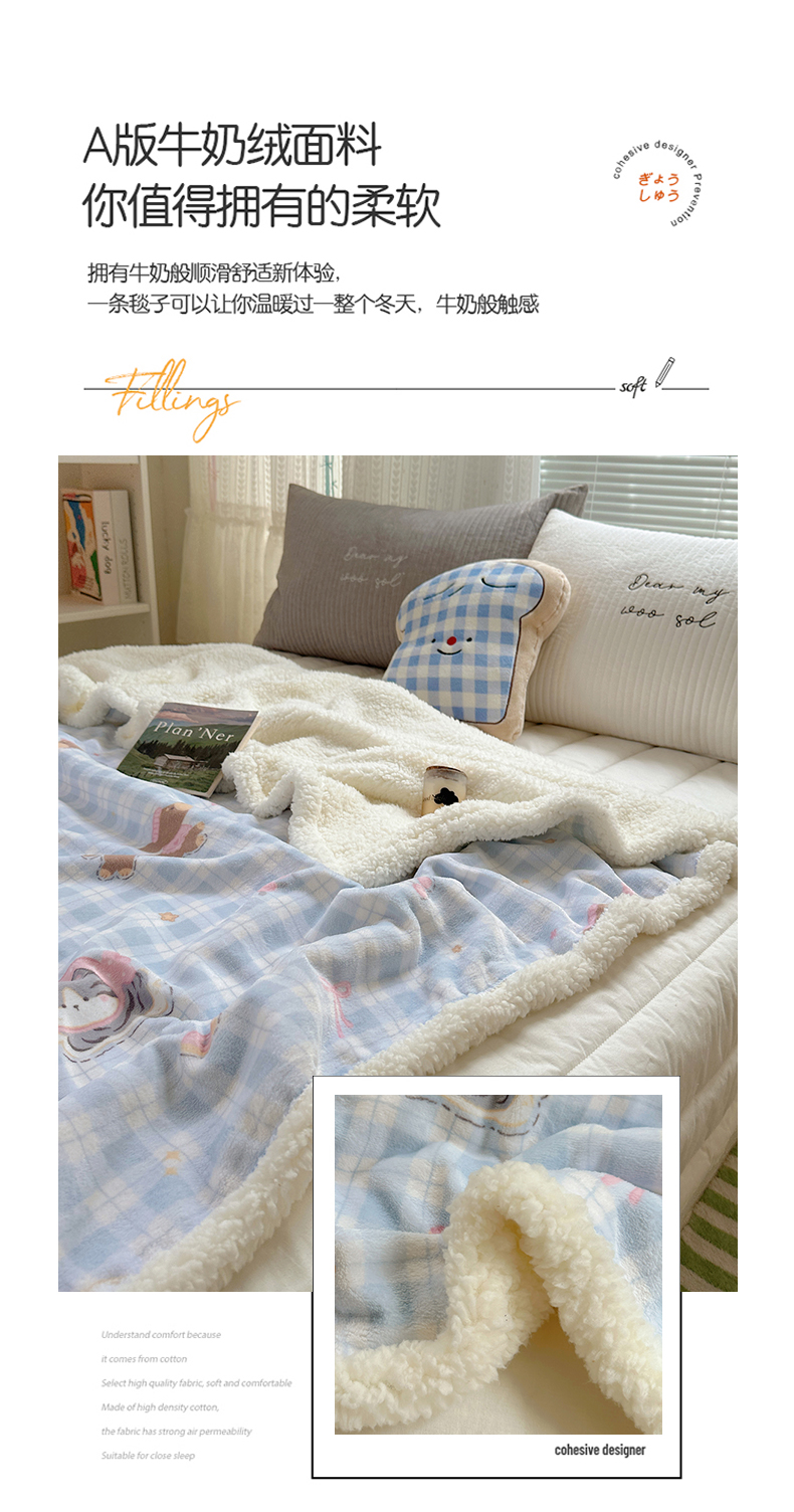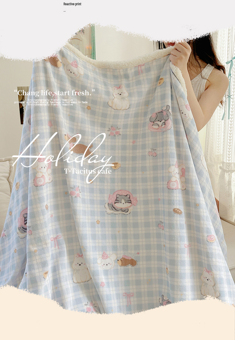 (总)萝莉家纺 2025新款小清新多功能牛奶绒羊羔绒毛毯毯子午睡毯,爱心格子粉,波点狗狗,黑蝴蝶,蝴蝶结兔,花晓绿,花晓玉,花园猫,欢乐熊,咖啡熊,卡通乐园,猫狗一家,萌宠小屋,萌仔派对,茉本玉,奇妙世界,软萌猫黄,软萌猫蓝,圣诞树,甜品屋,兔兔,五彩缤纷,小恐龙,元气满满,做个好梦,组合图仅供展示不可下单