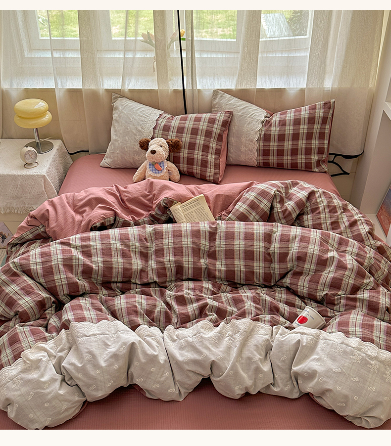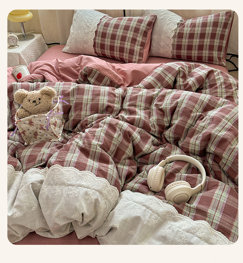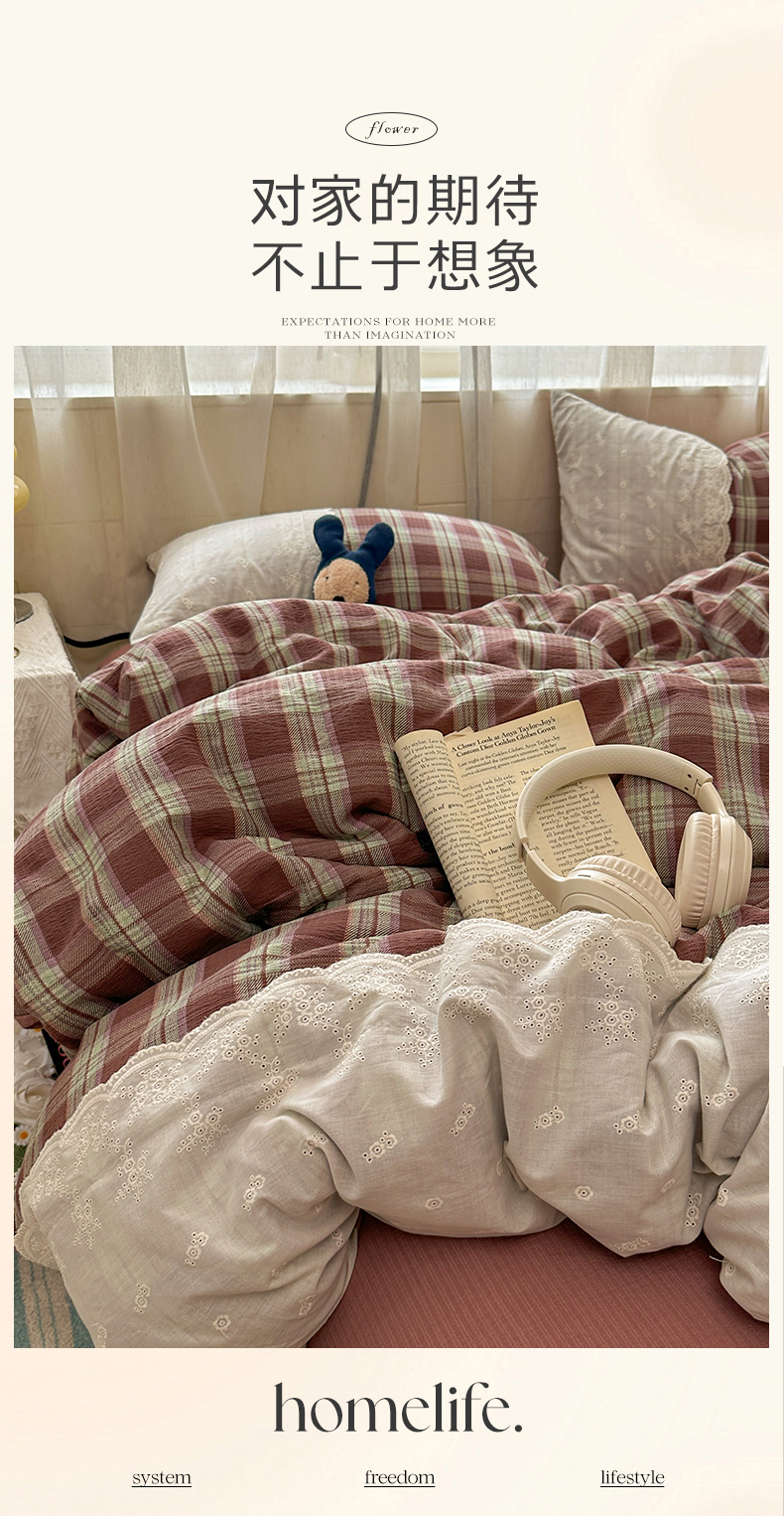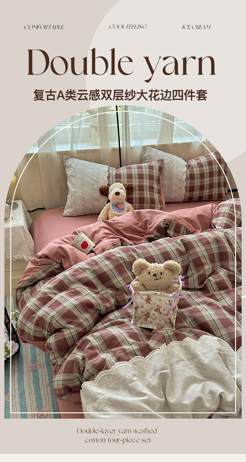 当前位置: 91家纺网 > 商品网购 > 床品套件 > 四件套 > 其它四件套 > 晚爱家纺(原晚安家居) 2025新款韩系少女风蕾丝花边四件套云感木棉双层纱-苏菲 苏菲·深咖格