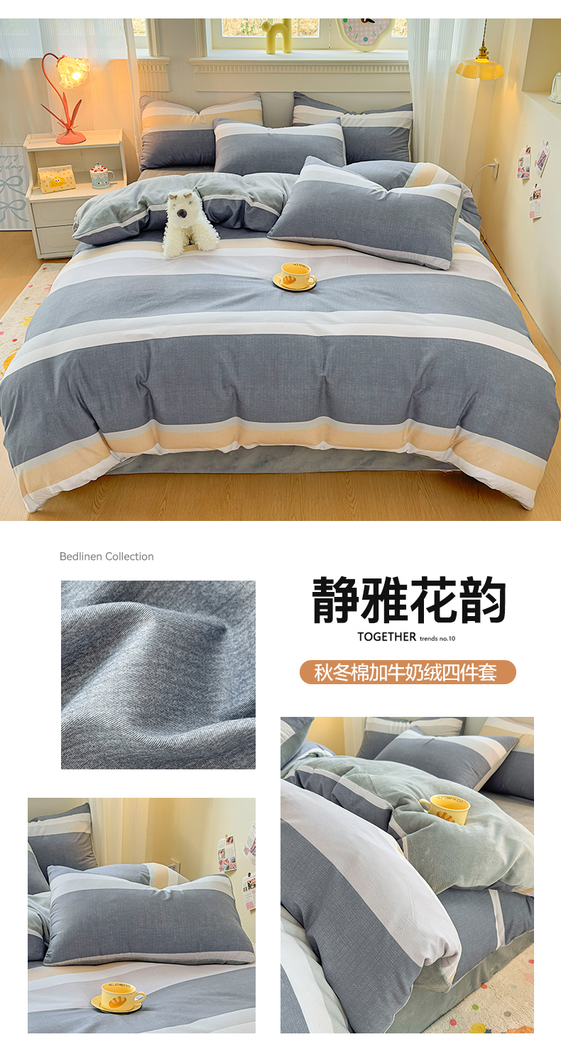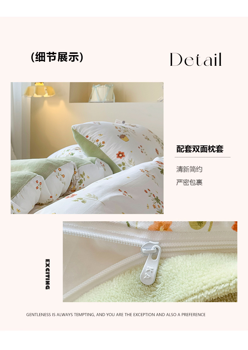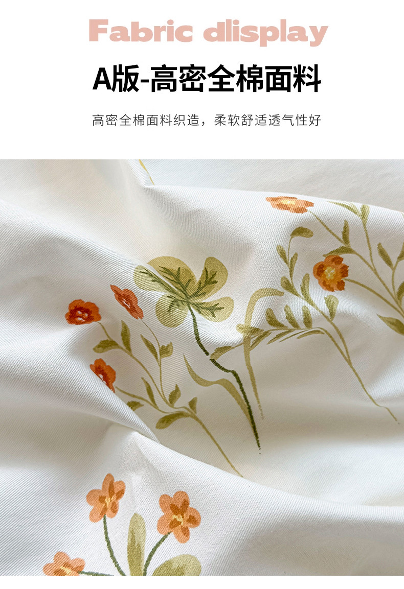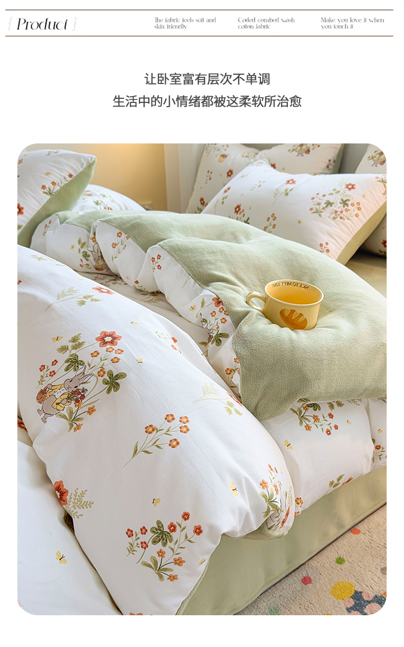商品名称:KA家纺 2025新款秋冬A棉B绒纯棉牛奶绒棉加绒四件套 花间小趣