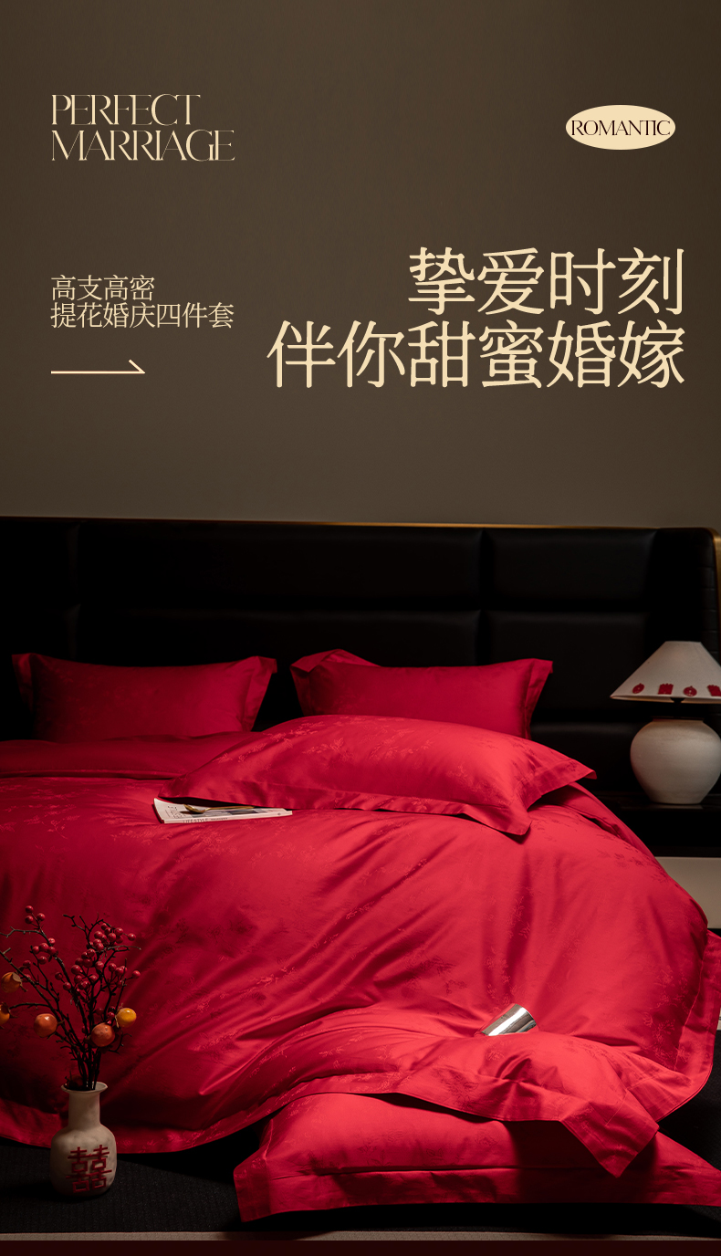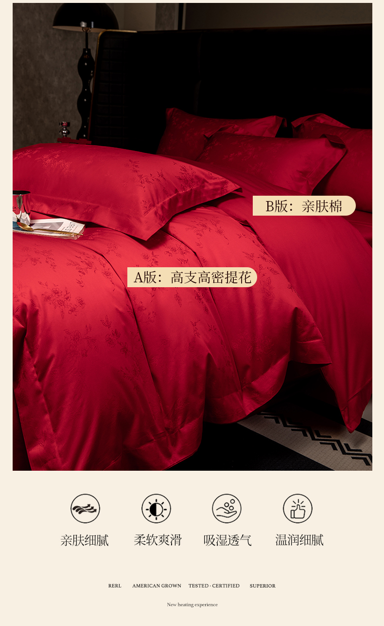 当前位置: 91家纺网 > 商品网购 > 床品套件 > 四件套 > 婚庆四件套 > 欧乐蒂 2025新款高支高密婚庆提花四件套 叶叶情深