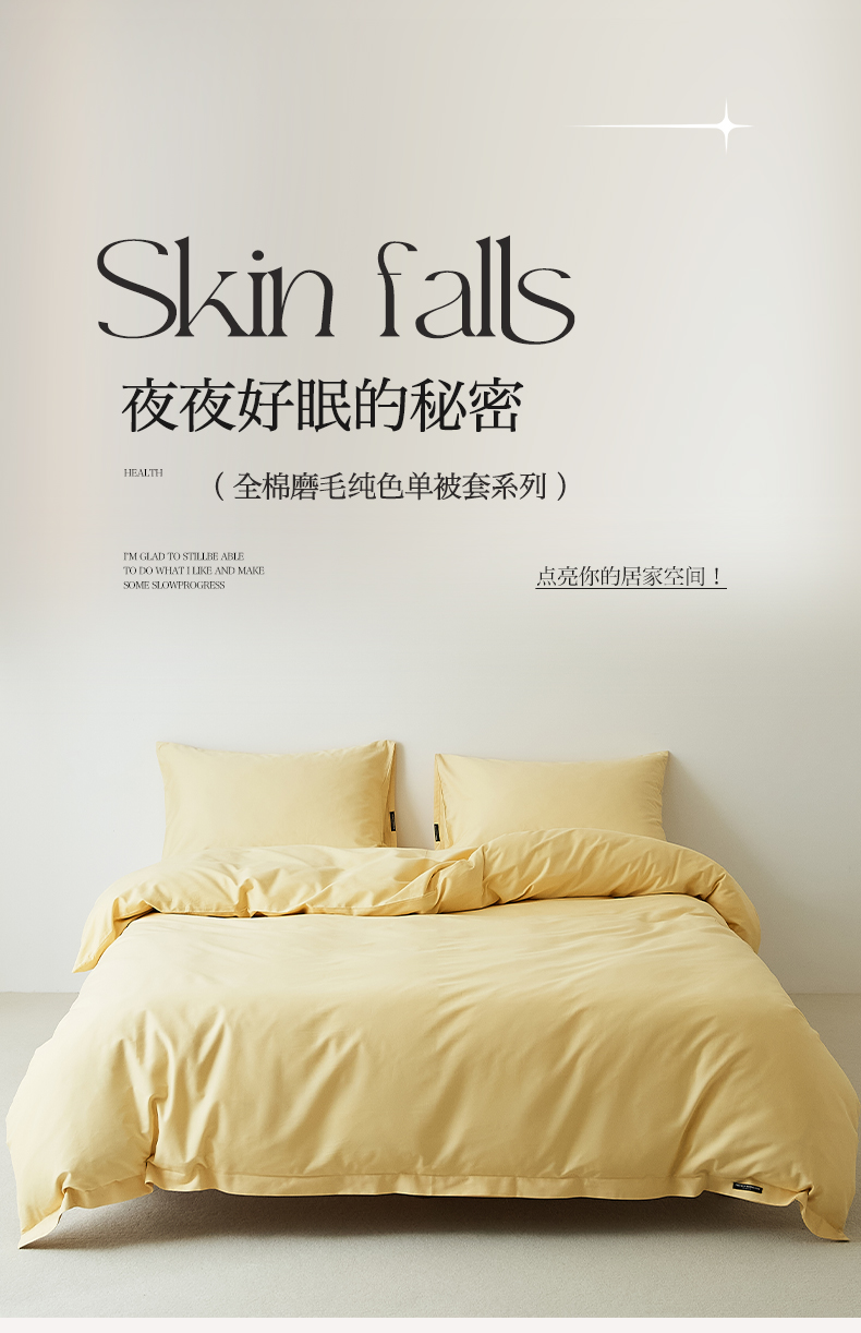 商品名称:EH家居 2025新款全棉磨毛纯色单被套-云栖系列 云栖-樱黄