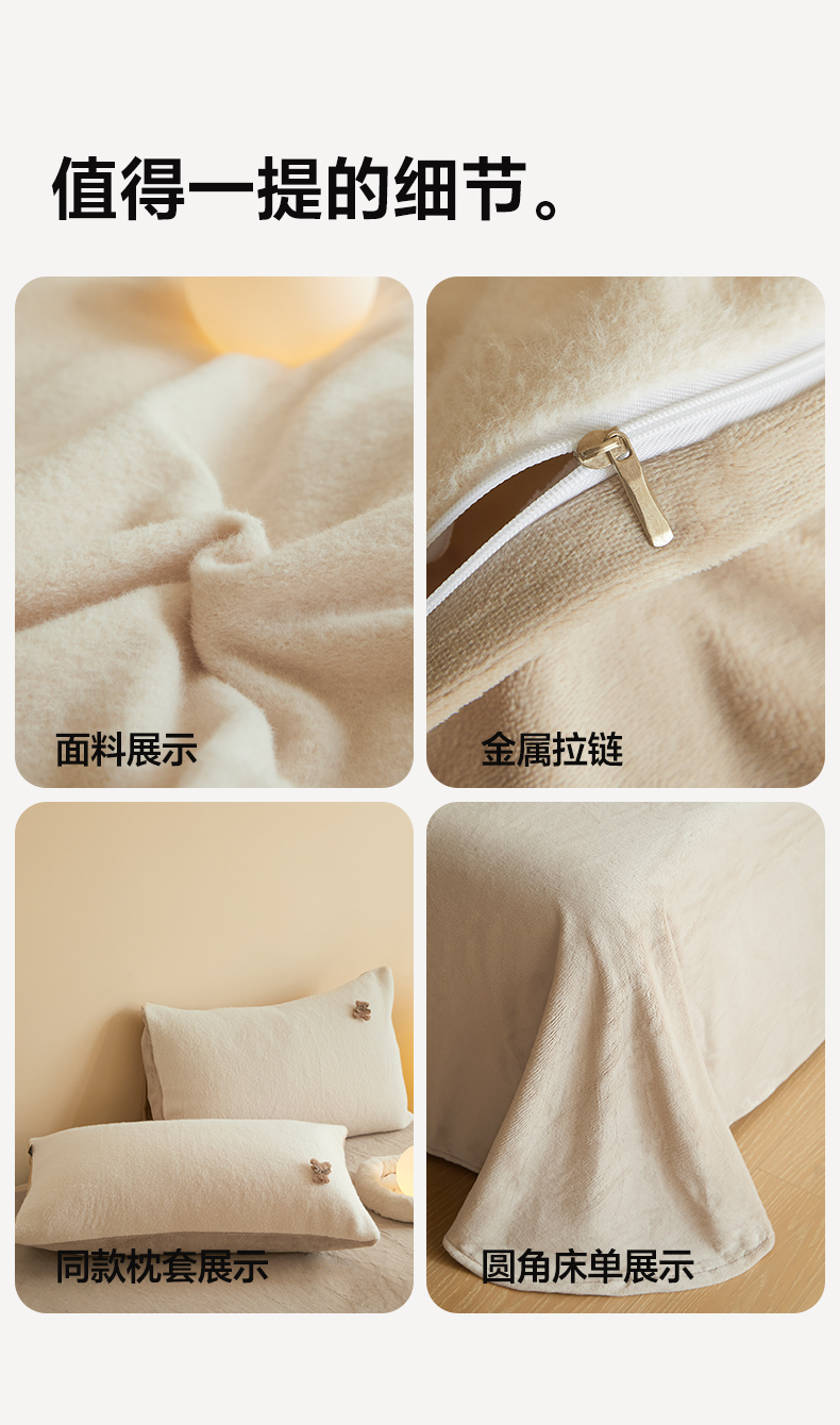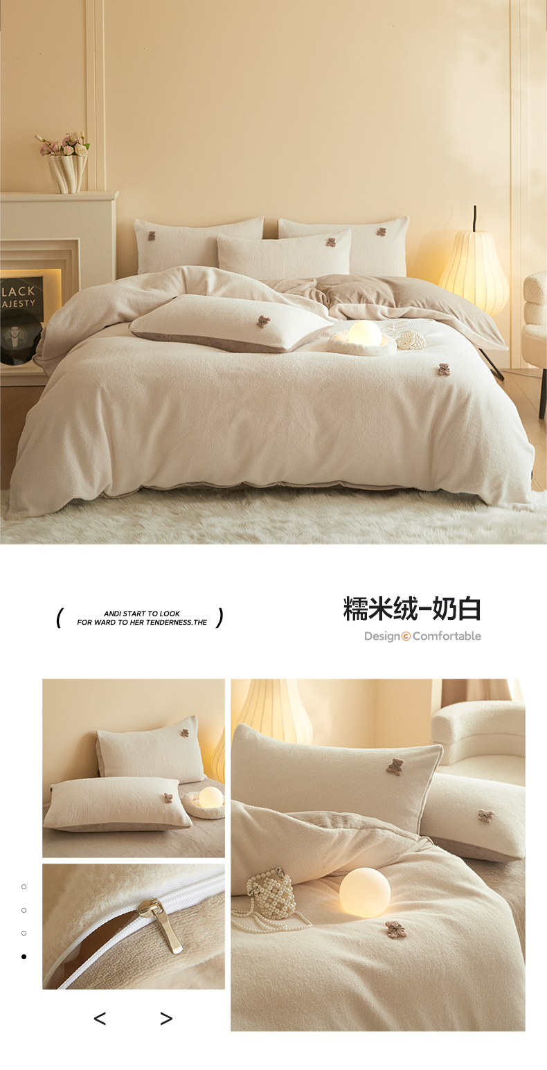 商品名称:羽梦家纺 2025新款260克加厚全消光糯米绒阳光绒加厚保暖四件套 糯米绒-卡其