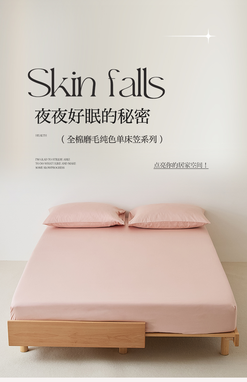 EH家居 2025新款全棉磨毛纯色单床笠-云栖系列 水粉