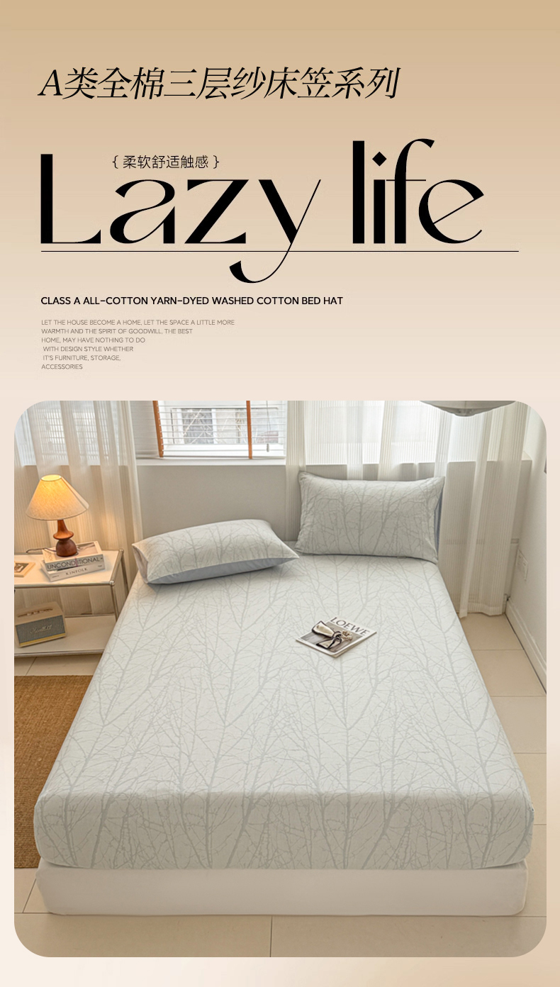 • 91家纺网 家纺一手货源 找家纺 眠博士 2025新款全棉纯棉三层纱床笠单品床笠床笠单件 三层纱床笠-春枝-蓝