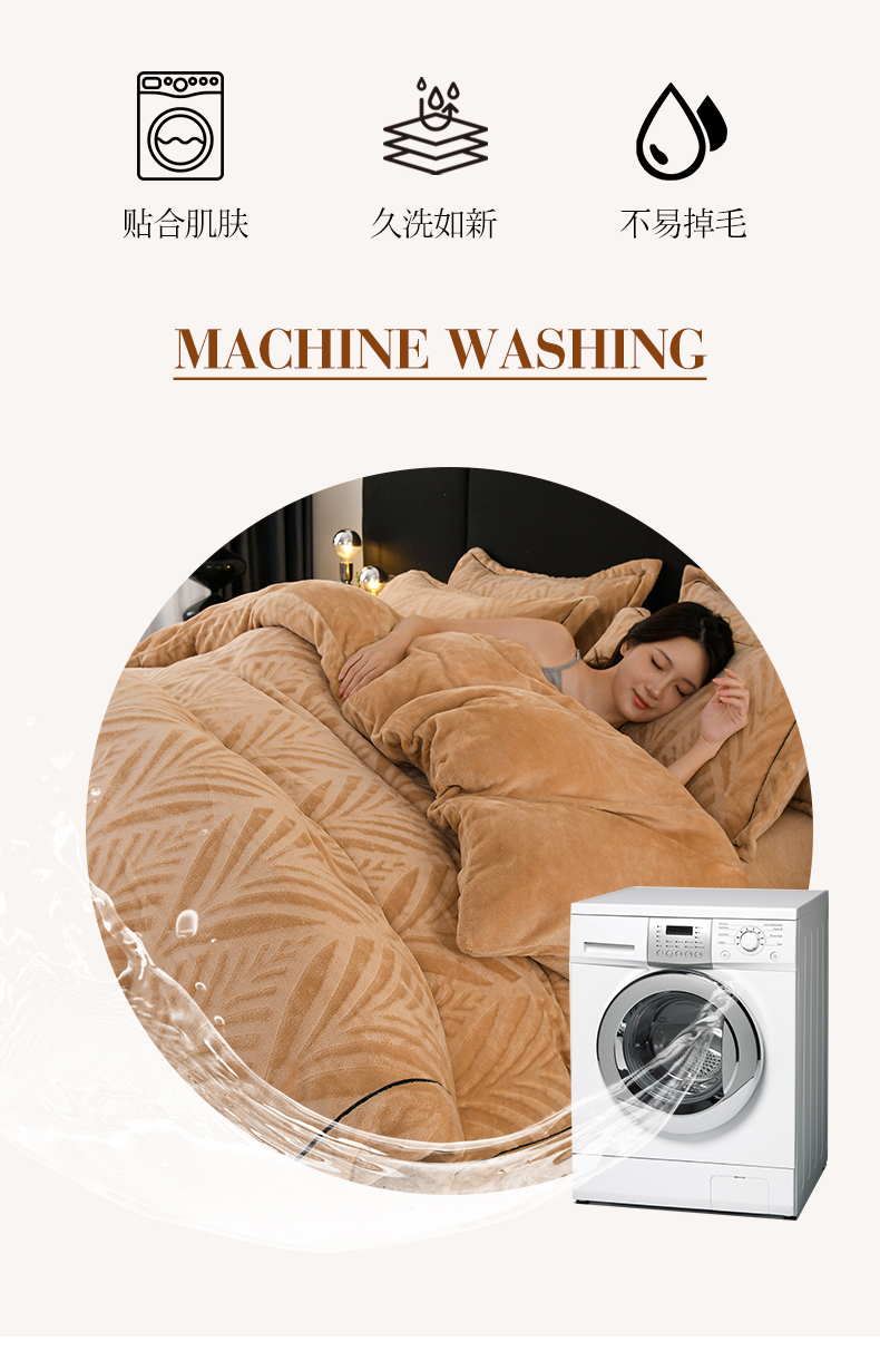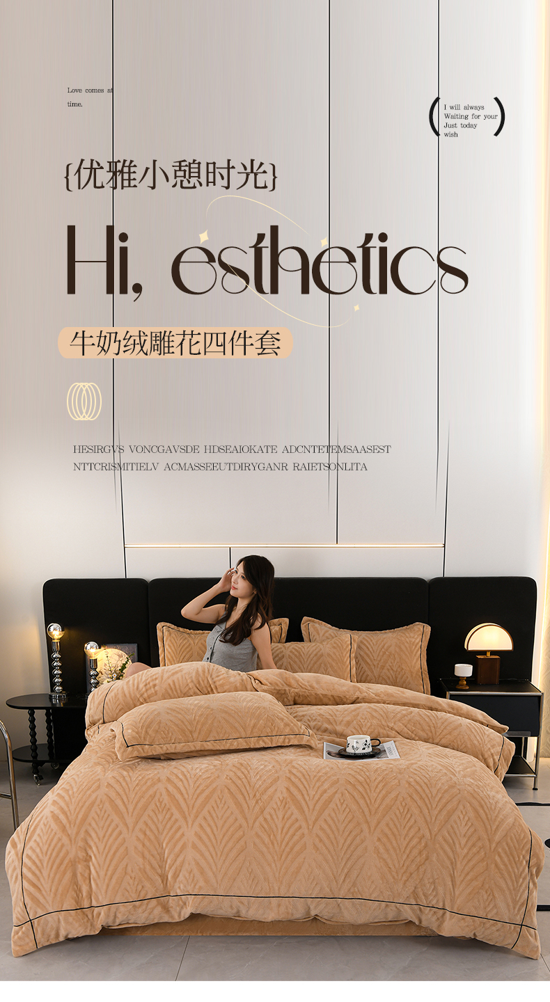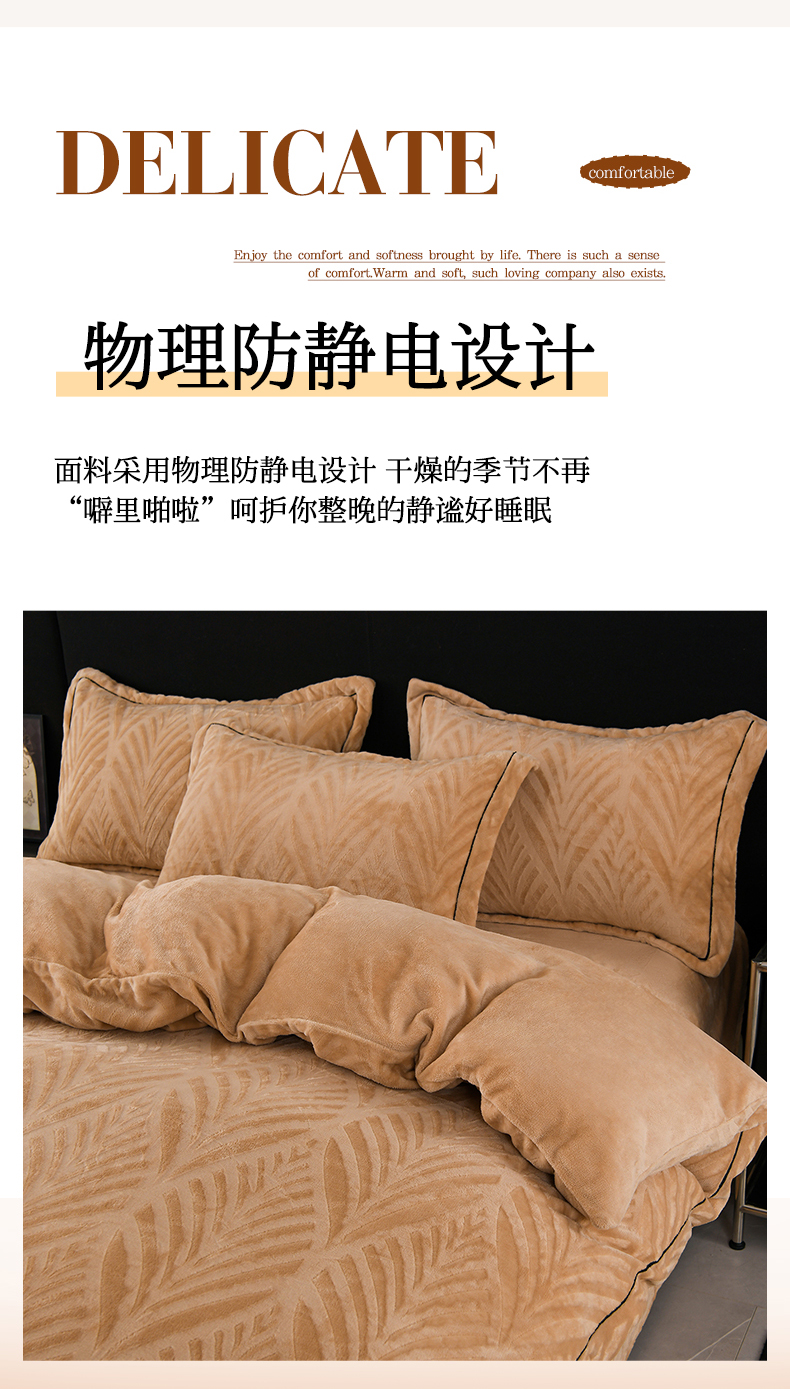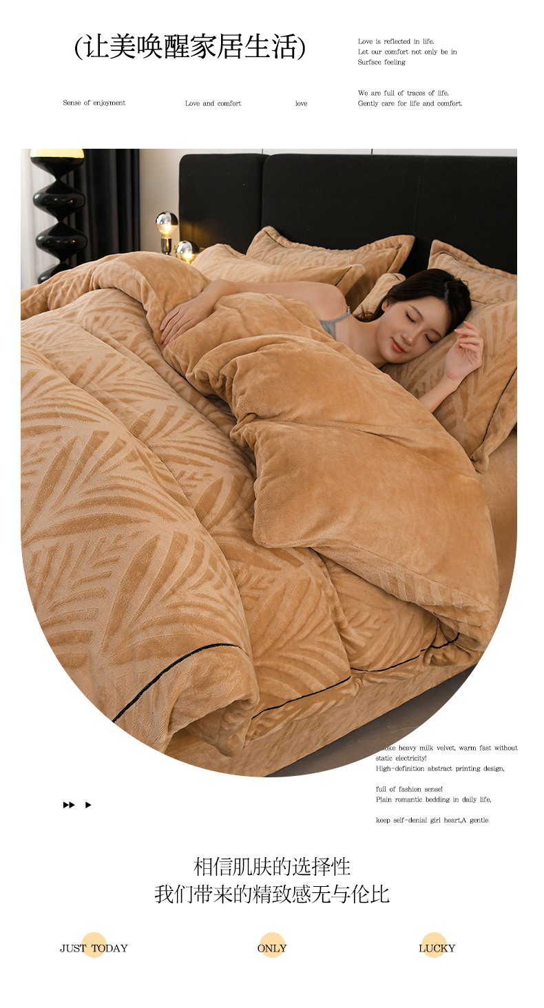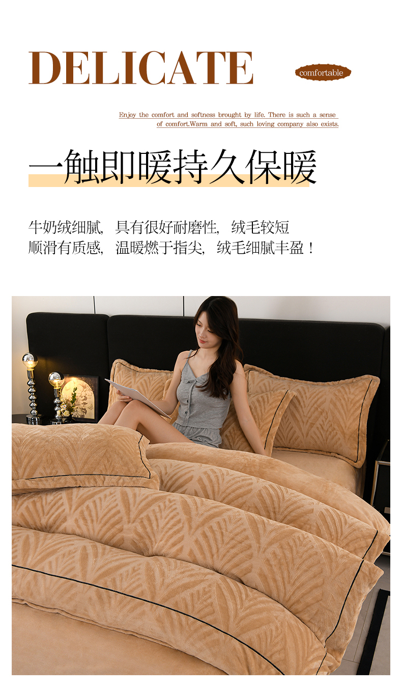 商品名称:紫月轩家纺 2025新款牛奶绒雕花四件套香槟-金