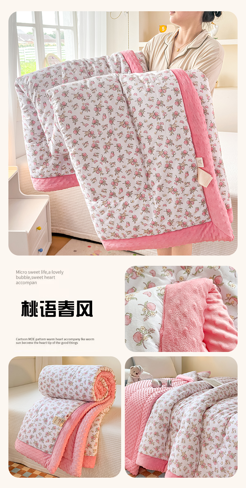 • 91家纺网 家纺一手货源 找家纺 默忆 2025新款全棉豆豆绒被子豆豆被冬被被芯 桃语春风
