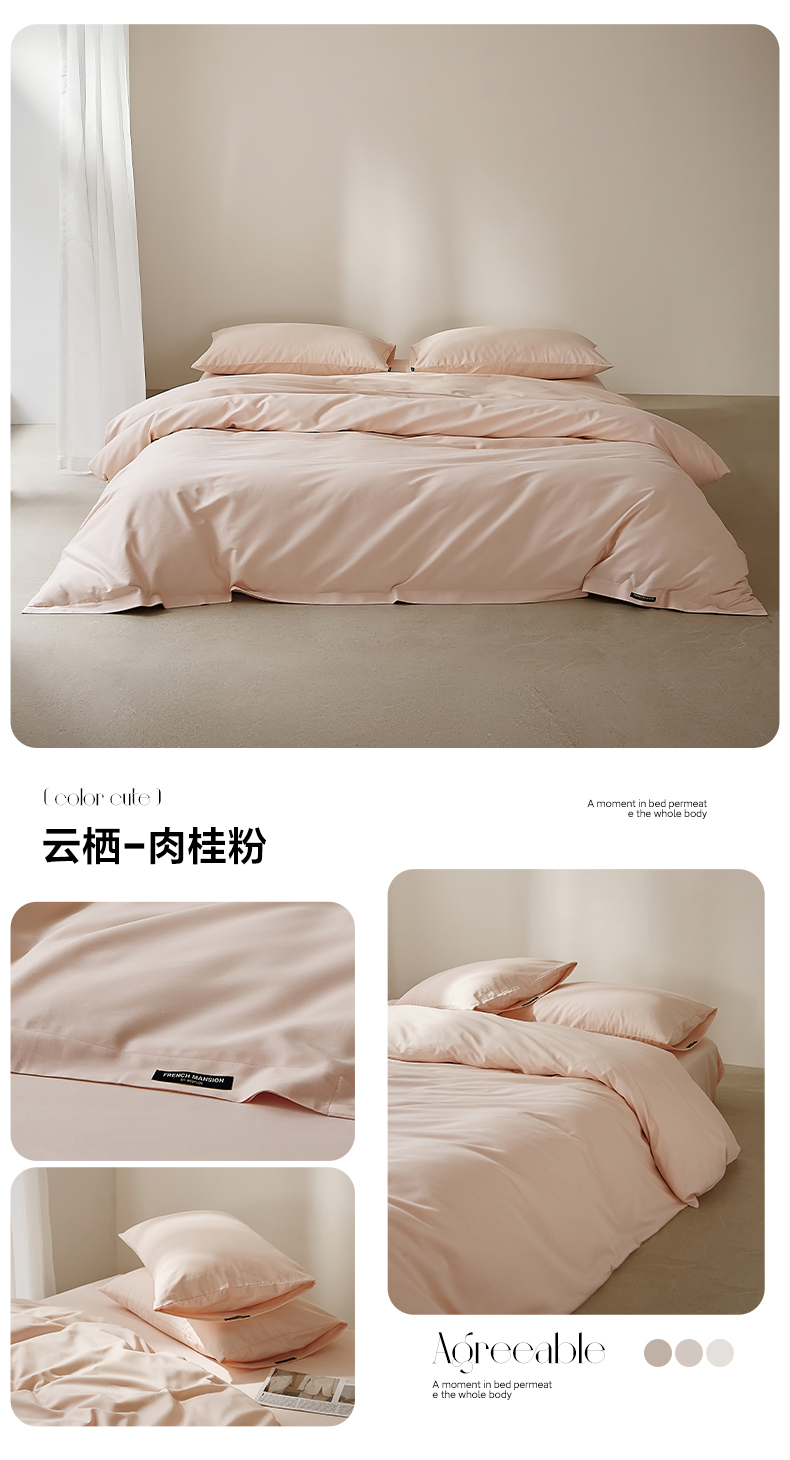 当前位置: 91家纺网 > 商品网购 > 床品套件 > 四件套 > 全棉活性四件套 > EH家居 2025新款100S长绒棉小宽边磨毛四件套--云栖系列 肉桂粉