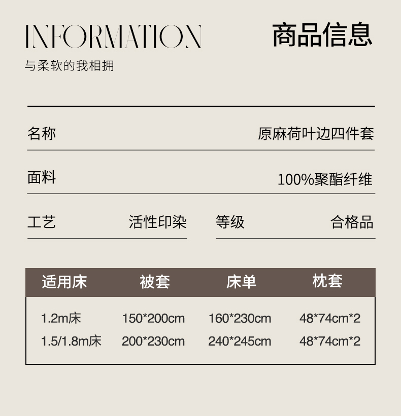 商品名称:宝士康家纺 2025新款原麻荷叶边四件套 秋风落叶