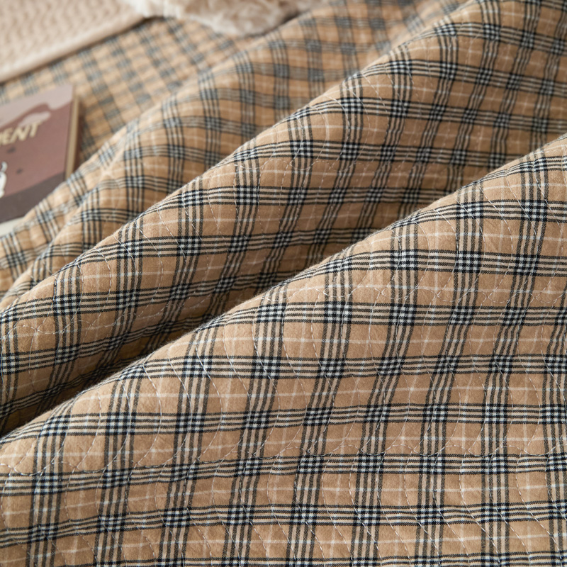 沐纯家居 2025新款色织水洗棉棉绒(大豆纤维填充)床盖三件套 豆丁-卡其