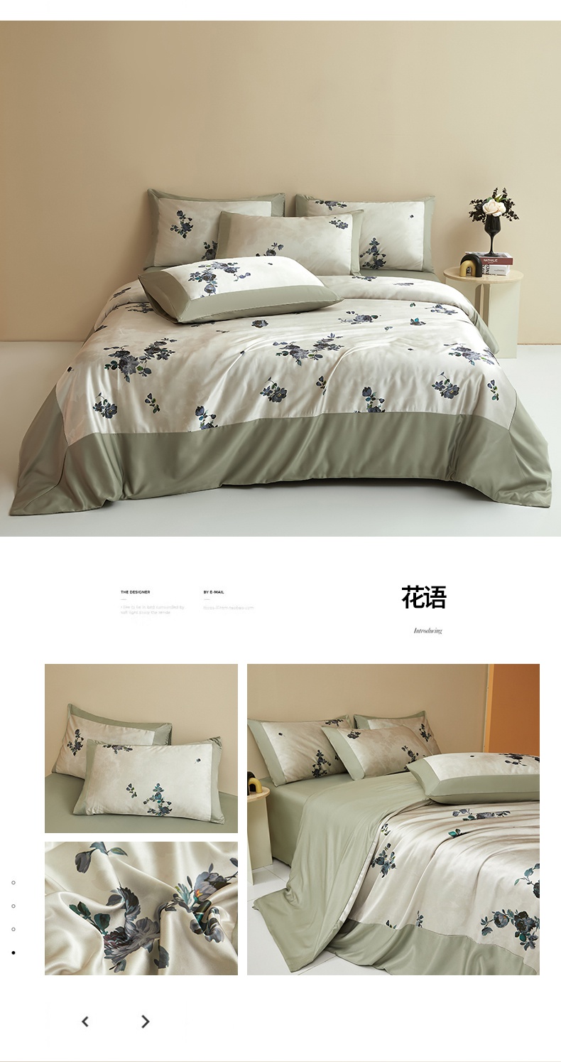 商品名称:麦空家居 2025新款水洗贡缎印花四件套系列-半夏(高端礼盒) 林间里