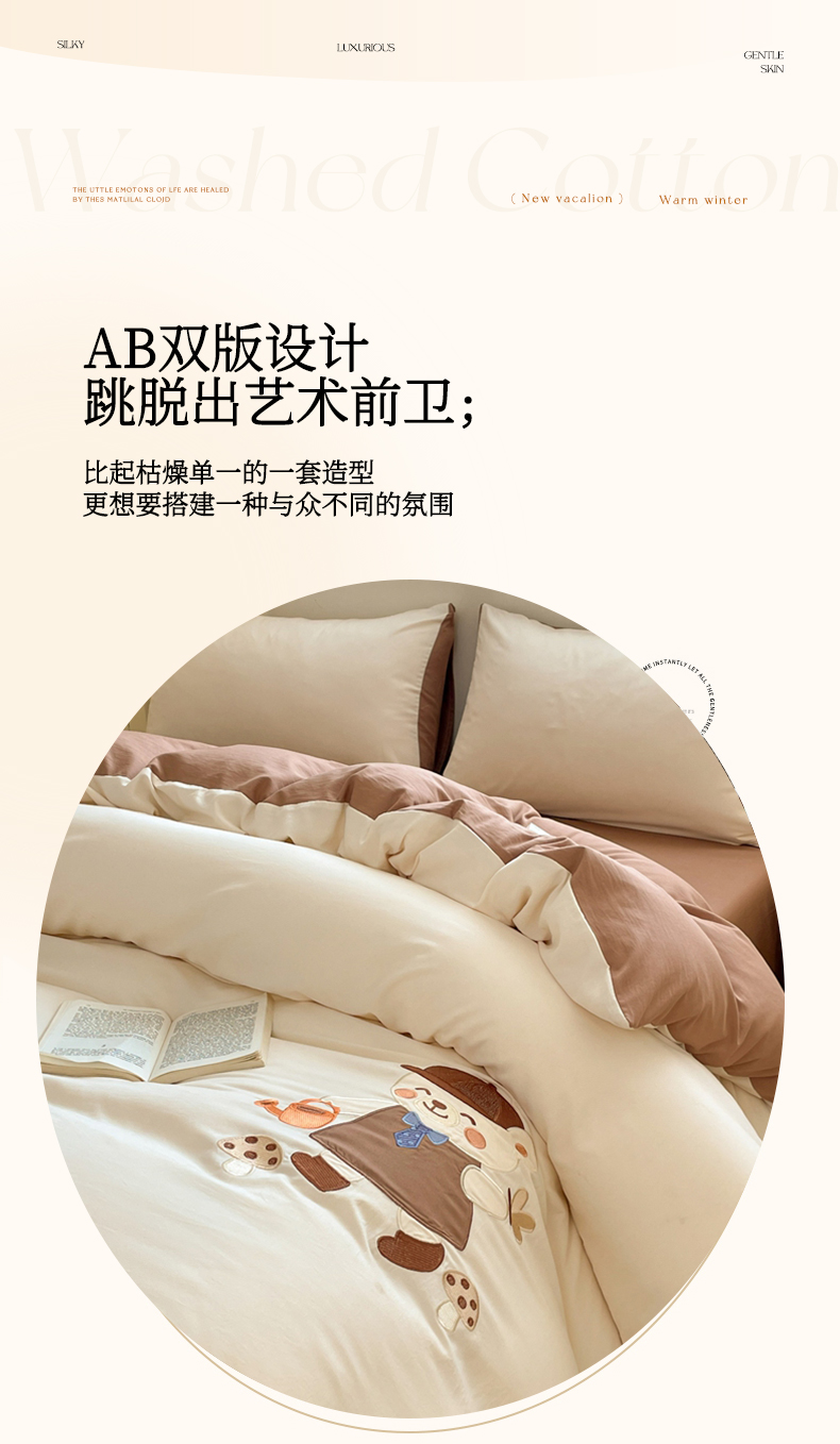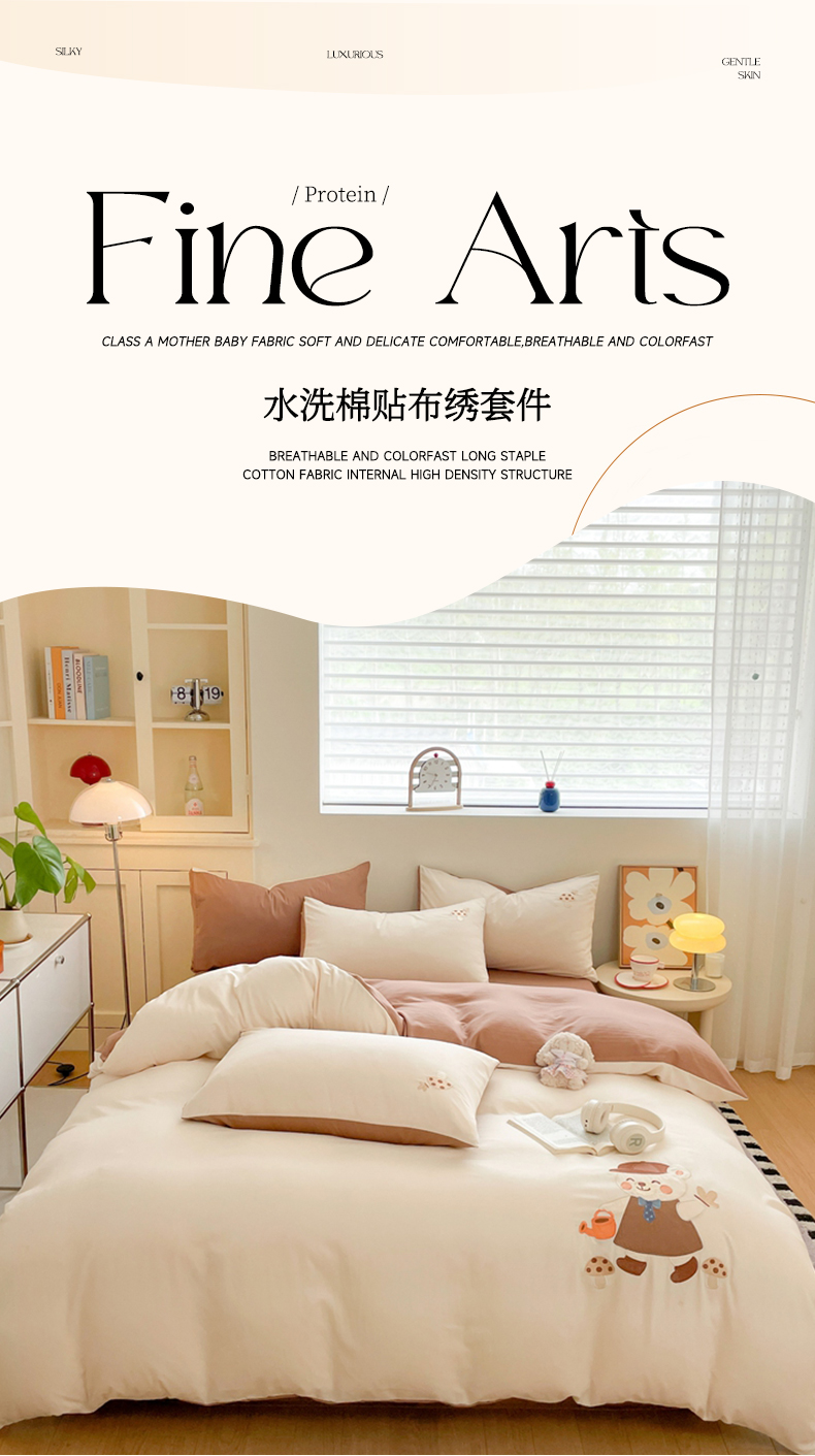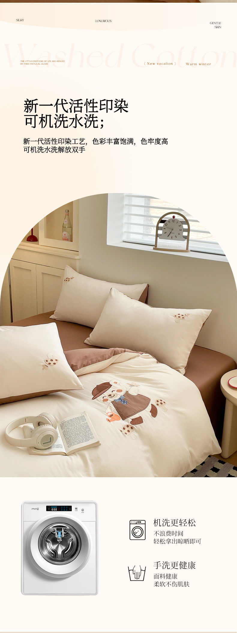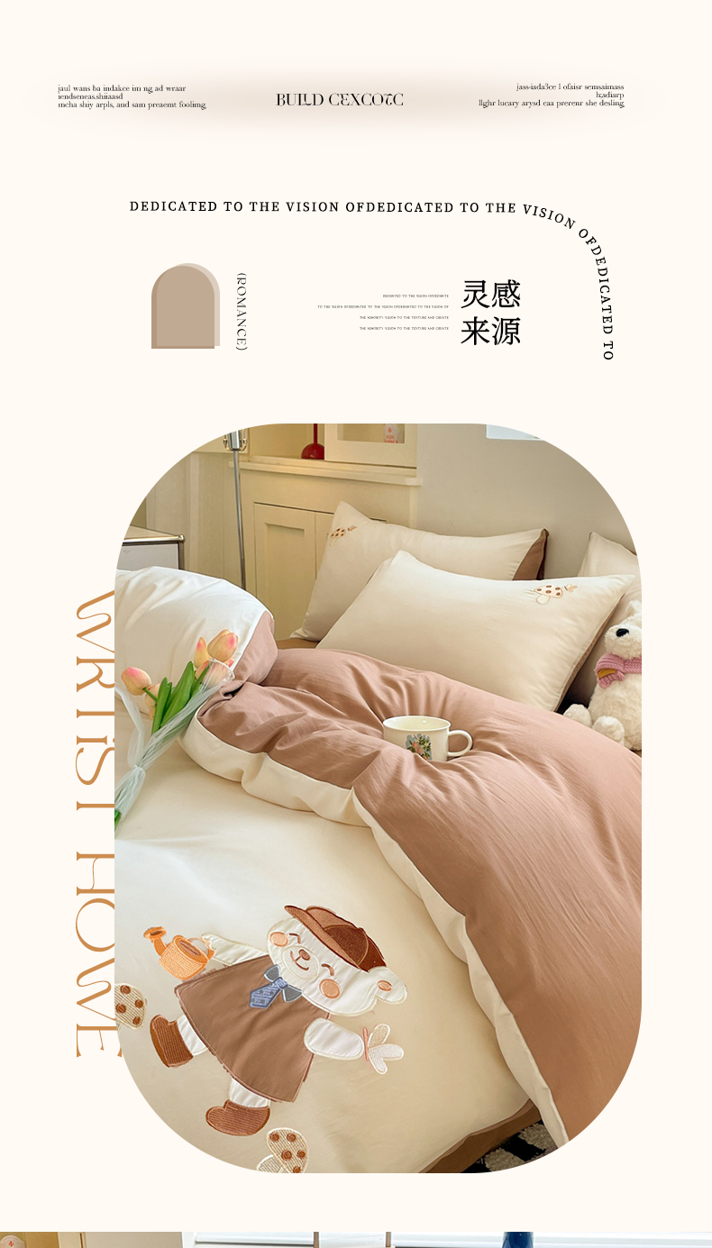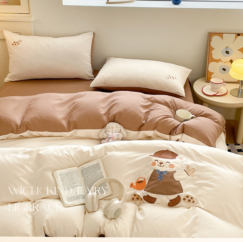 当前位置: 91家纺网 > 商品网购 > 床品套件 > 四件套 > 水洗棉四件套 > 麦空家居 2025新款抗菌水洗皱棉贴布绣四件套学生三件套-糖果梦 泰迪熊-奶昔白