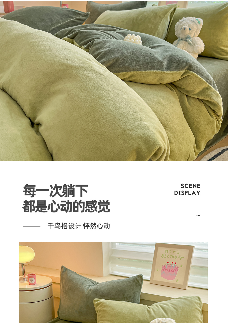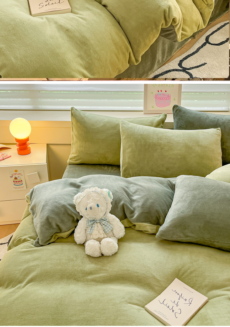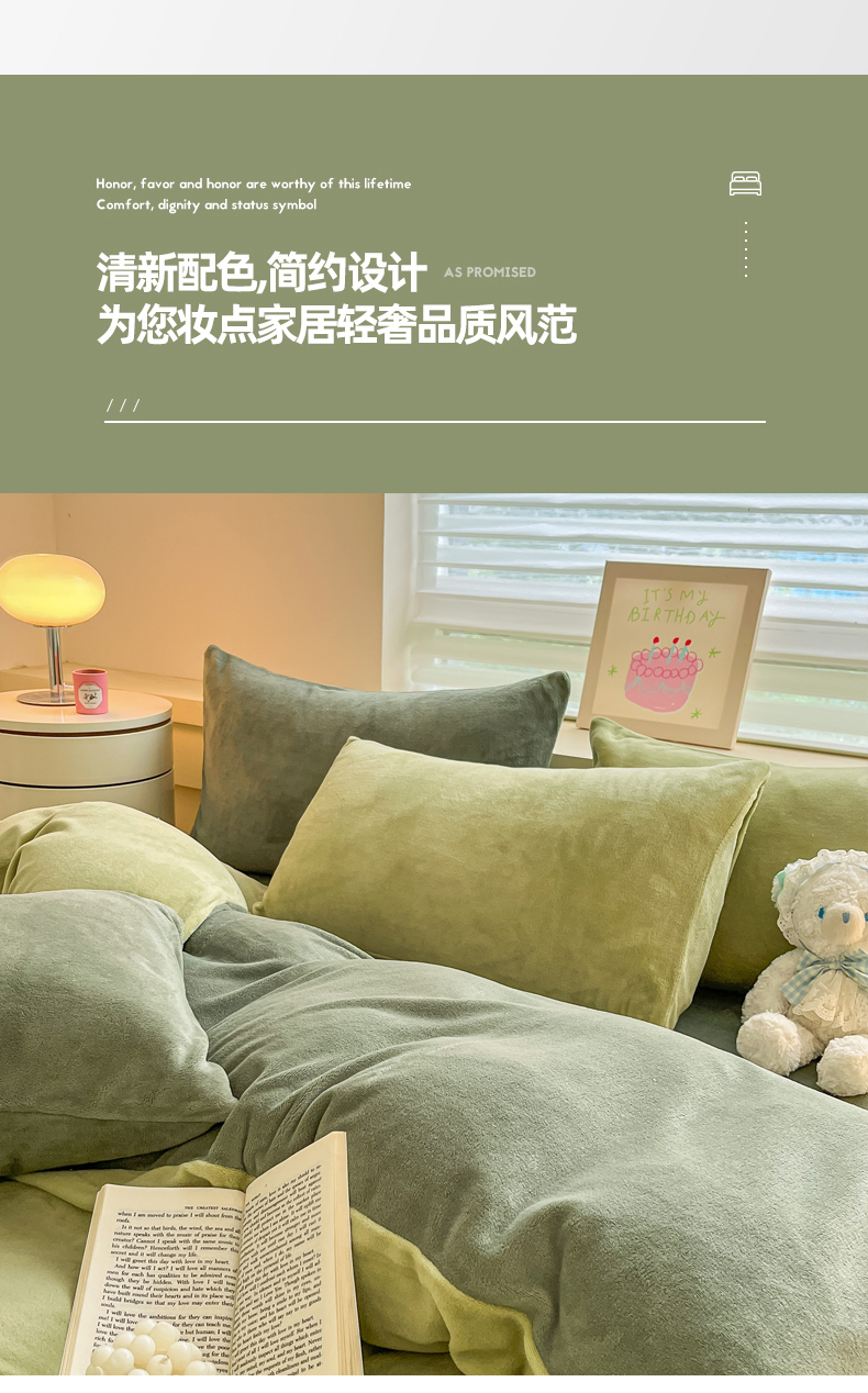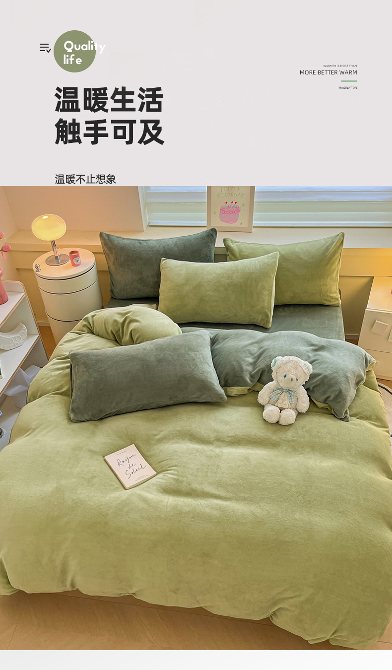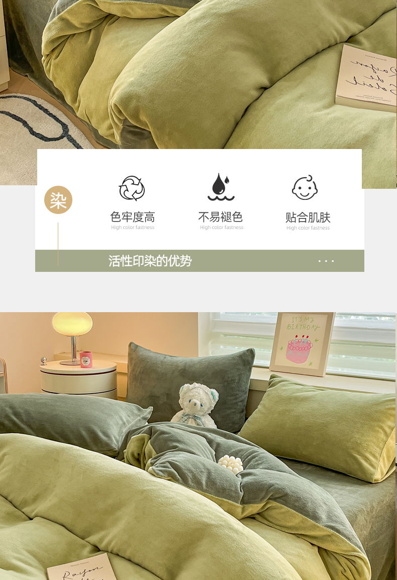 当前位置: 91家纺网 > 商品网购 > 床品套件 > 四件套 > 法莱绒四件套 > 三朵家纺 2025秋冬新款法莱绒混搭系列四件套 橄榄绿+墨绿
