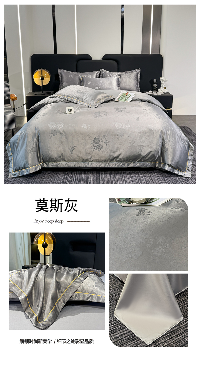 商品名称:栩裕纺织 2025新款提花宋锦缎四件套 莫斯灰