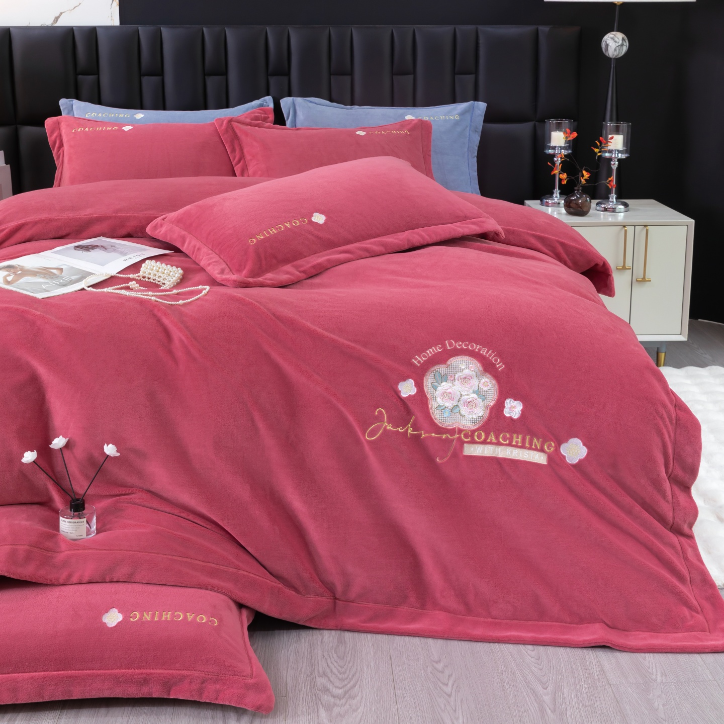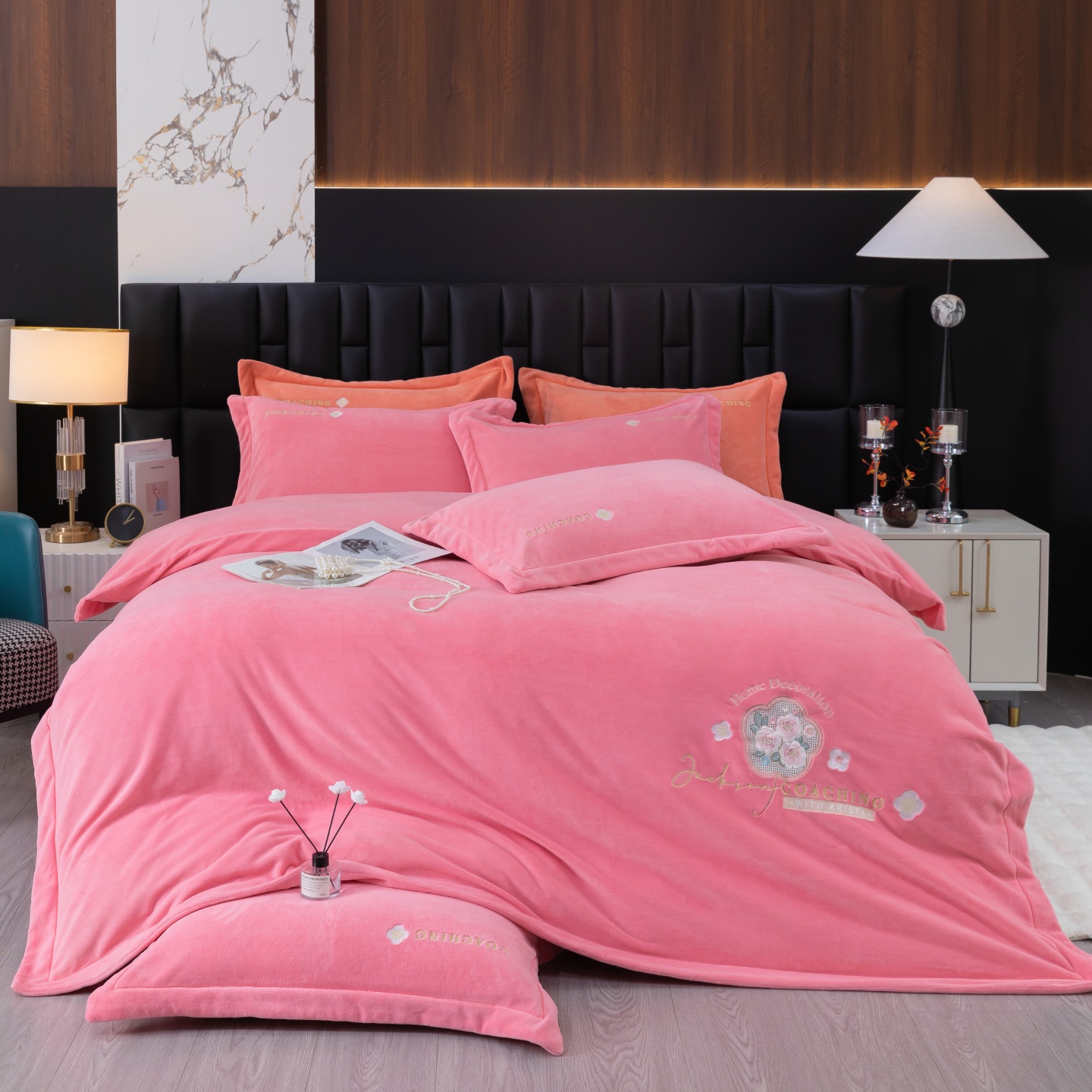 优姿家纺 2025新款10斤牛奶绒宽边绣花保暖四件套-田园印象 田园印象-粉