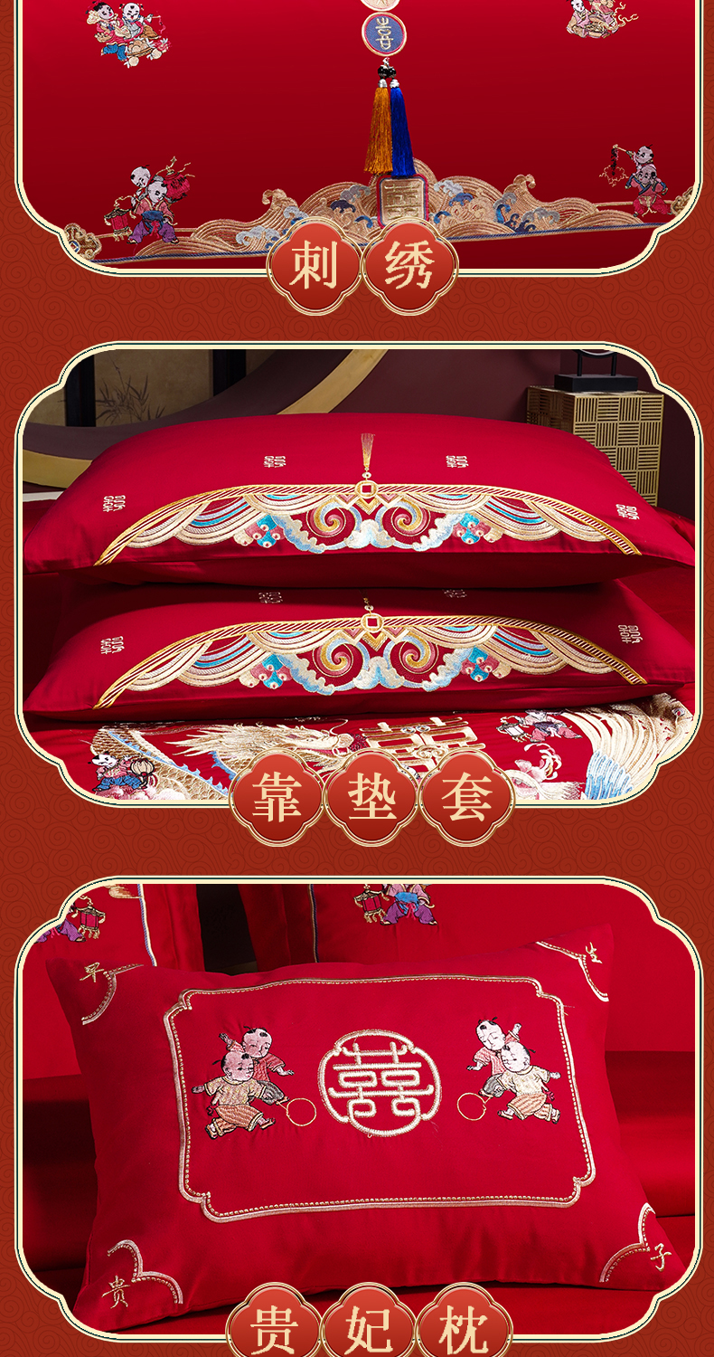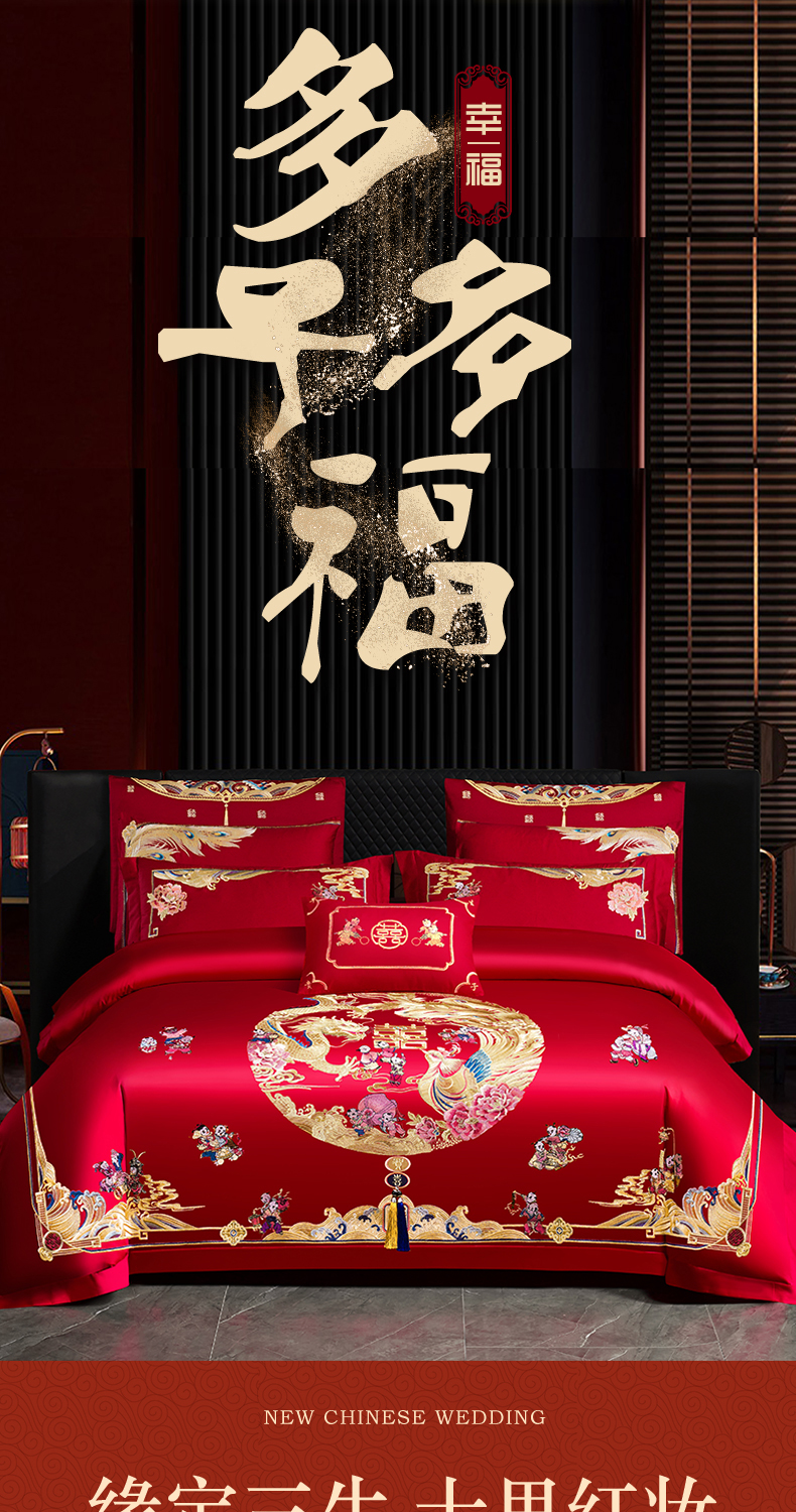 当前位置: 91家纺网 > 商品网购 > 床品套件 > 四件套 > 婚庆四件套 > 2025年新款中式亲肤加厚双面磨毛婚庆四件套刺绣多件套 多子多福