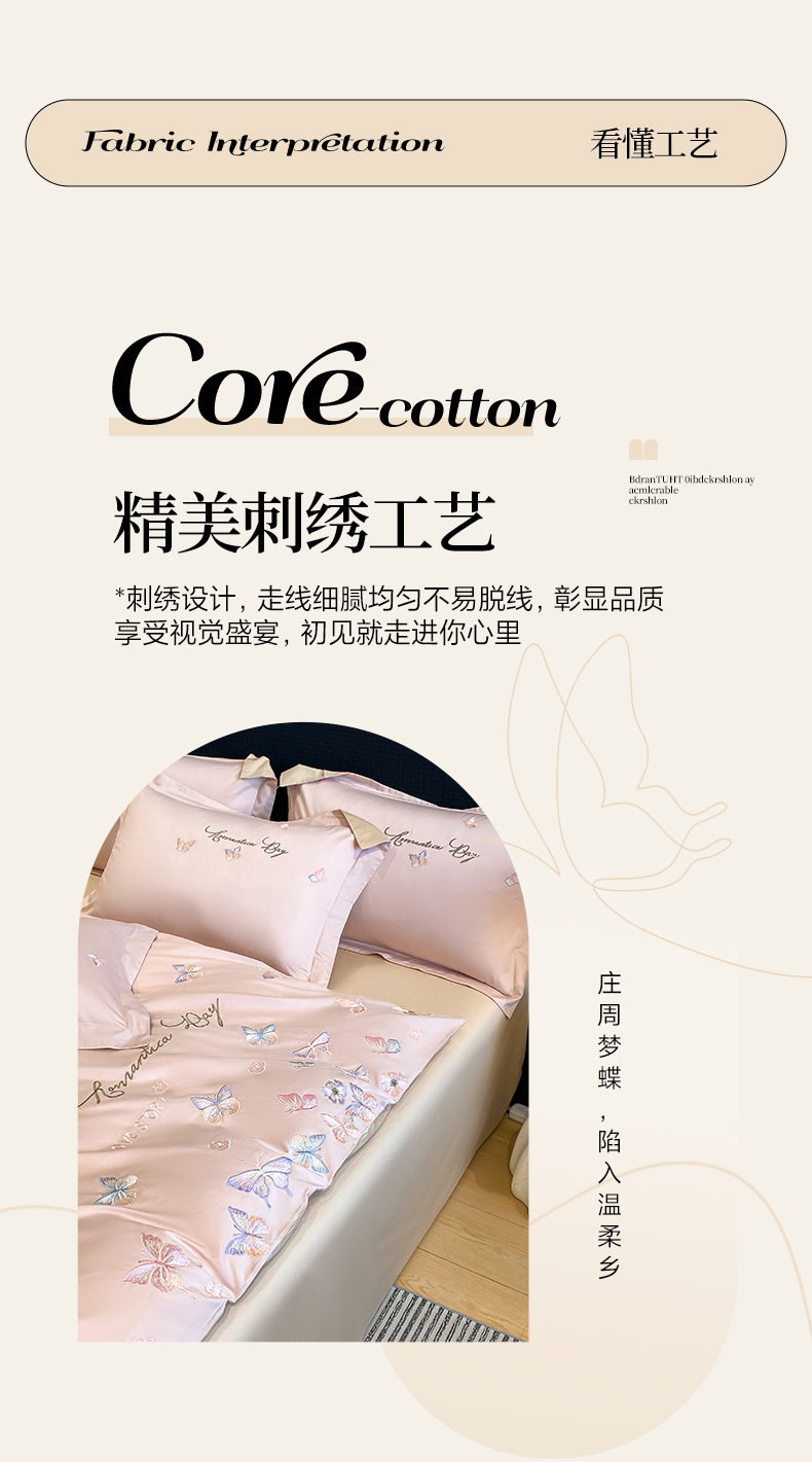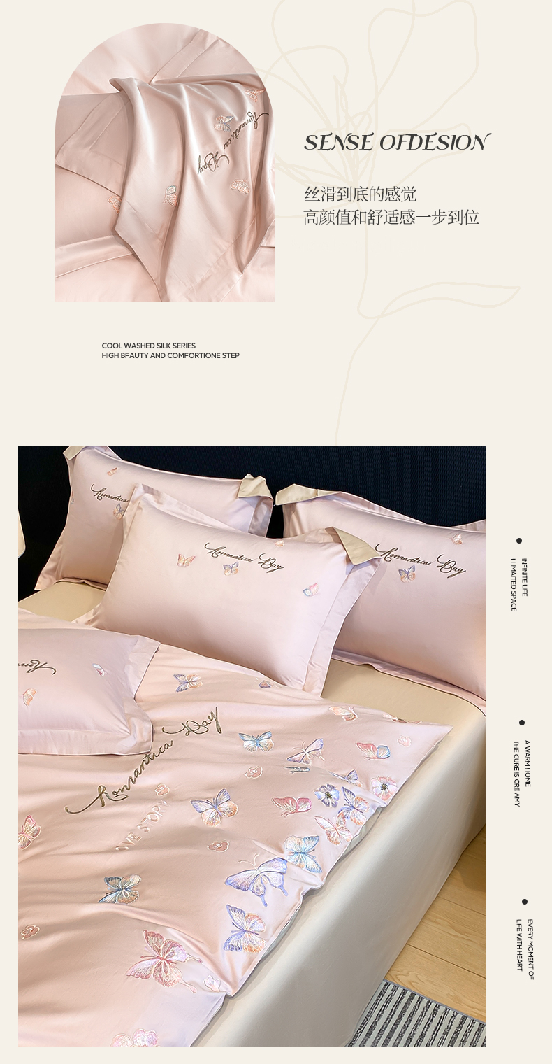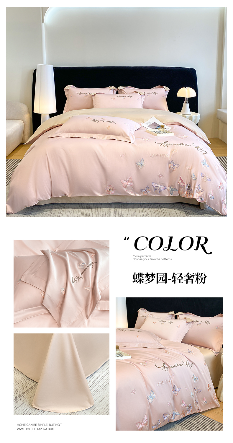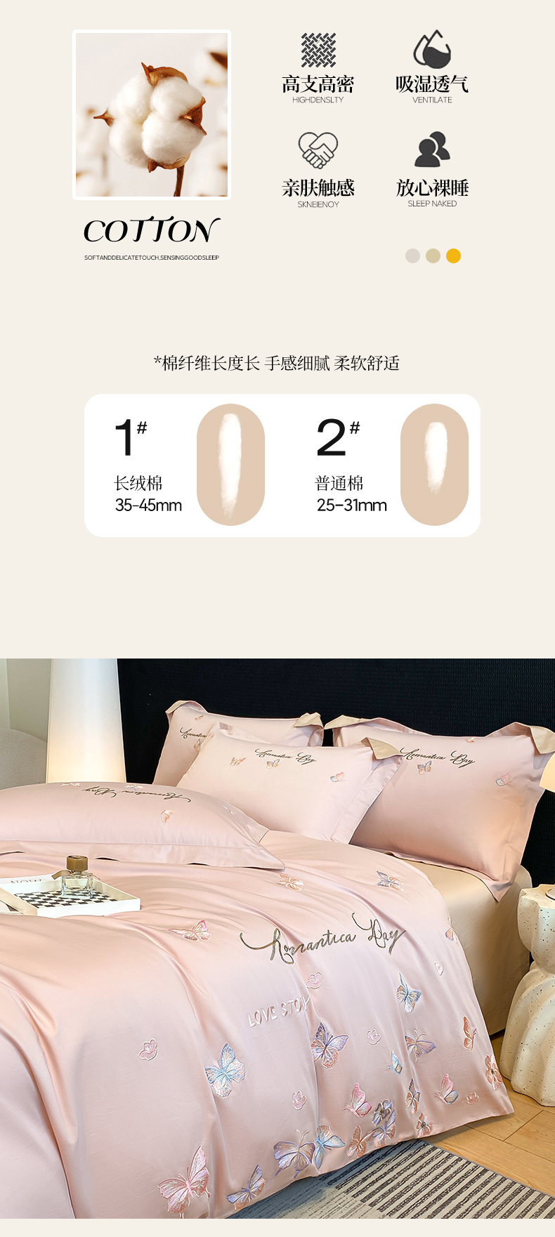 桃园 新款纯棉全棉长绒棉刺绣绣花高端礼盒蝶梦园系列四件套 轻奢粉