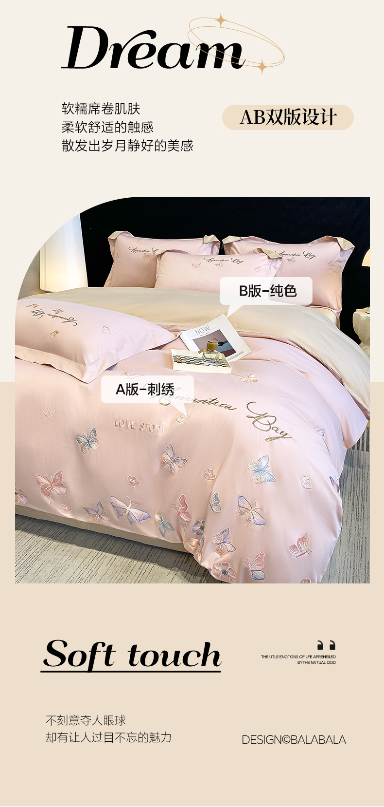 (总)桃园 新款纯棉全棉长绒棉刺绣绣花高端礼盒蝶梦园系列四件套,白粉,白紫,轻奢粉,飘蓝
