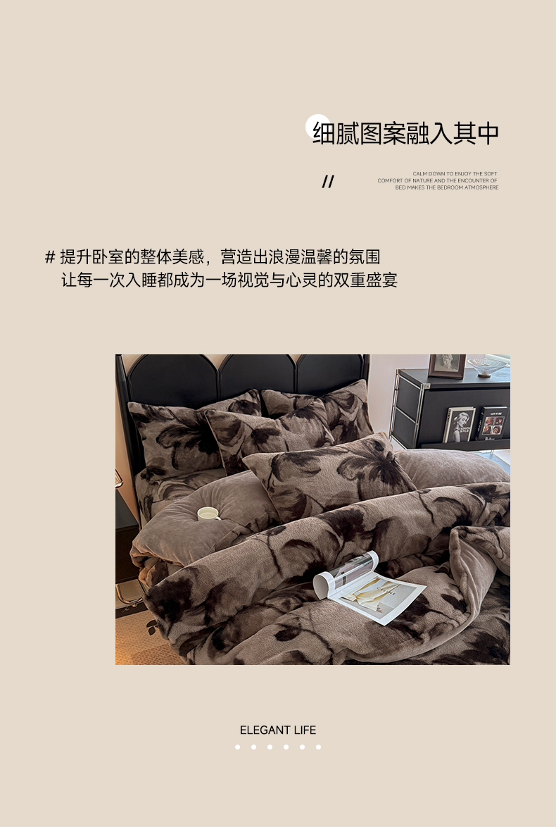 当前位置: 91家纺网 > 商品网购 > 床品套件 > 四件套 > 其它四件套 > 慕梵家居 2025新款亲肤舒适兔绒床笠款四件套 墨庭芳菲-咖