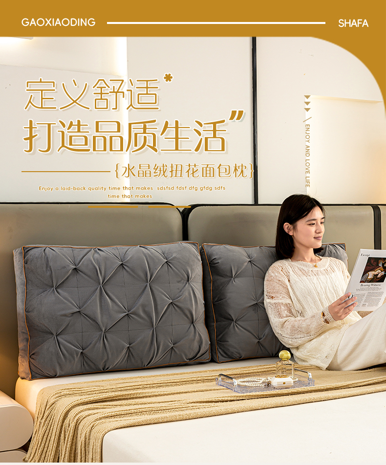 (总)碧尔家居 2025新款轻奢床上靠垫卧室床头靠枕银灰榻榻米靠背长条飘窗防撞软垫可拆洗,米黄,乳白,银灰
