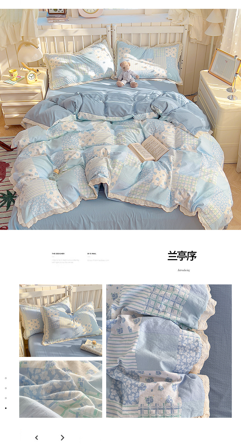 当前位置: 91家纺网 > 商品网购 > 床品套件 > 四件套 > 其它四件套 > 赫然家纺 2026新款云感皱皱双层纱法式镂空全棉花边款四件套 兰亭序