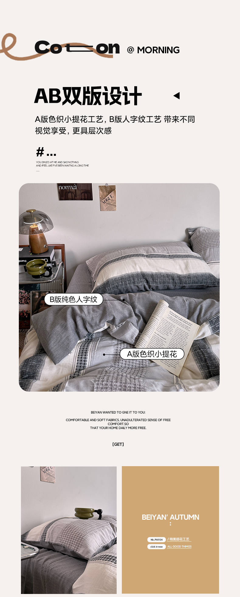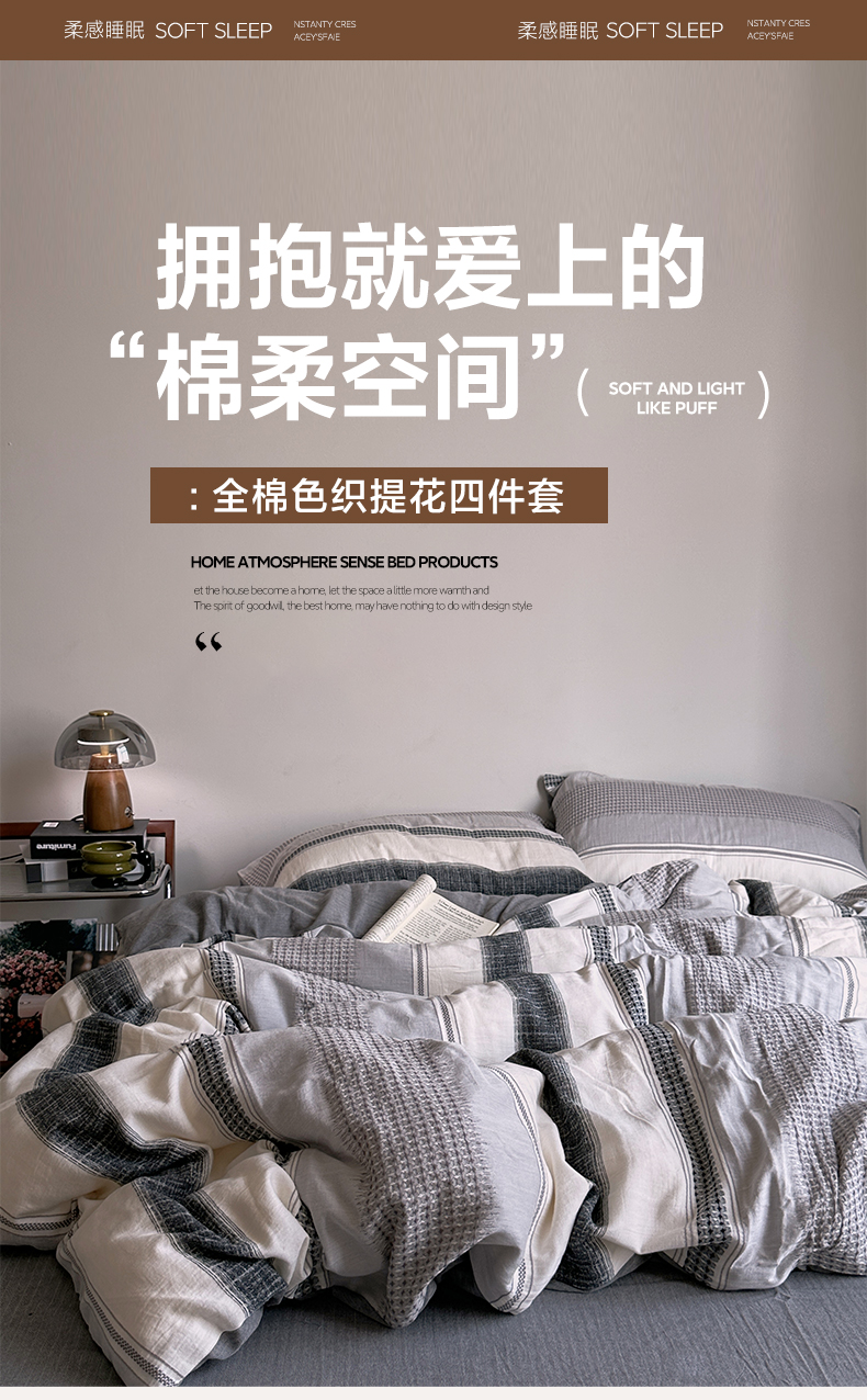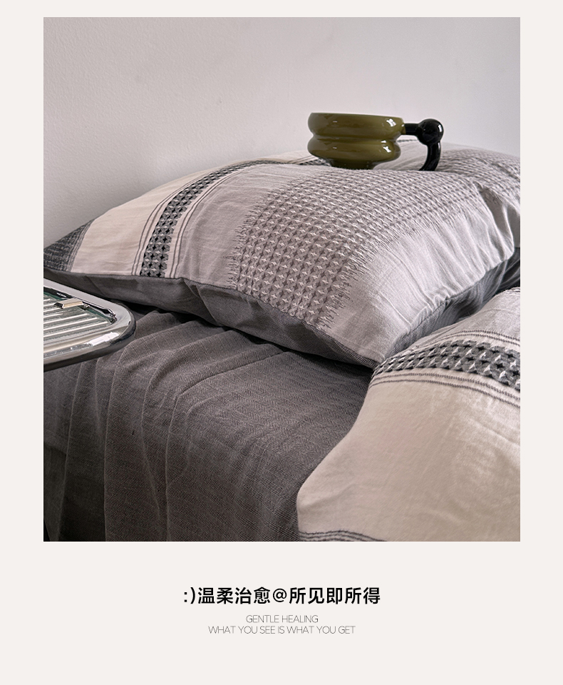 当前位置: 91家纺网 > 商品网购 > 床品套件 > 四件套 > 色织四件套 > 艾咪-Amy ntmy 2025新款全棉色织小提花四件套-絮语 透明PE袋(如需手提无纺布包+5元) 絮语-灰