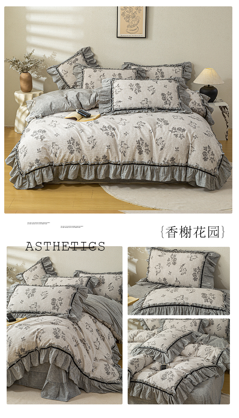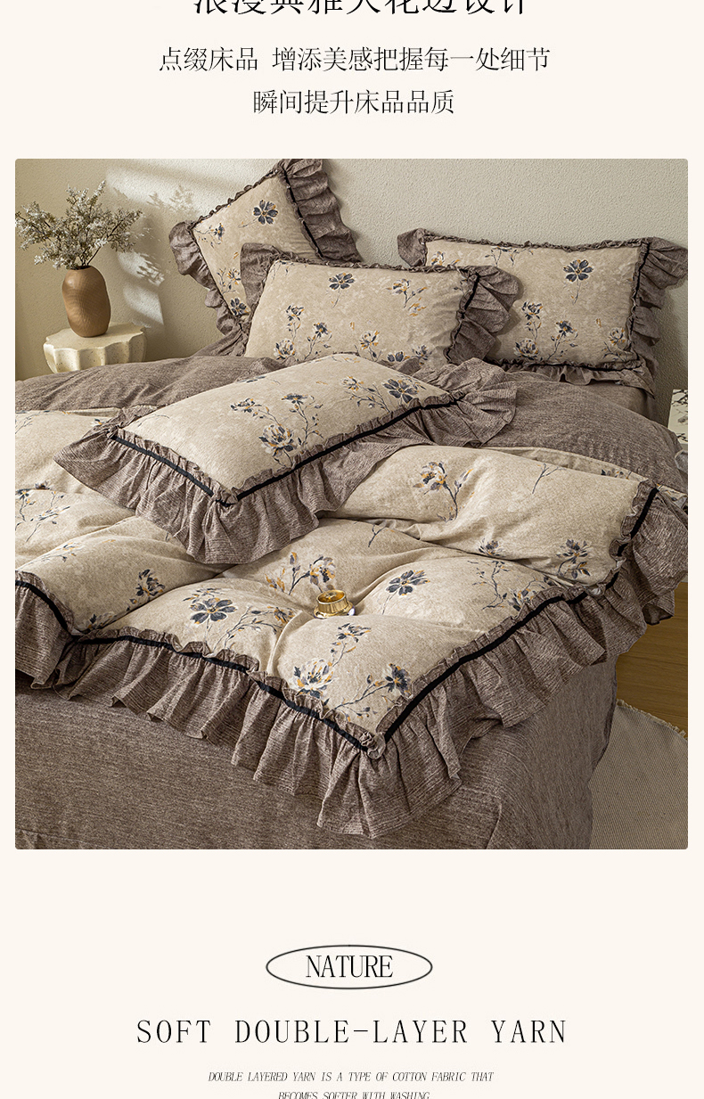 (总)大麦家纺 2025新款牛奶绒印花夹棉花边床盖四件套,蝴蝶紫黛,花漾茶町,花语弥香,云锦茵梦,紫鸢繁花