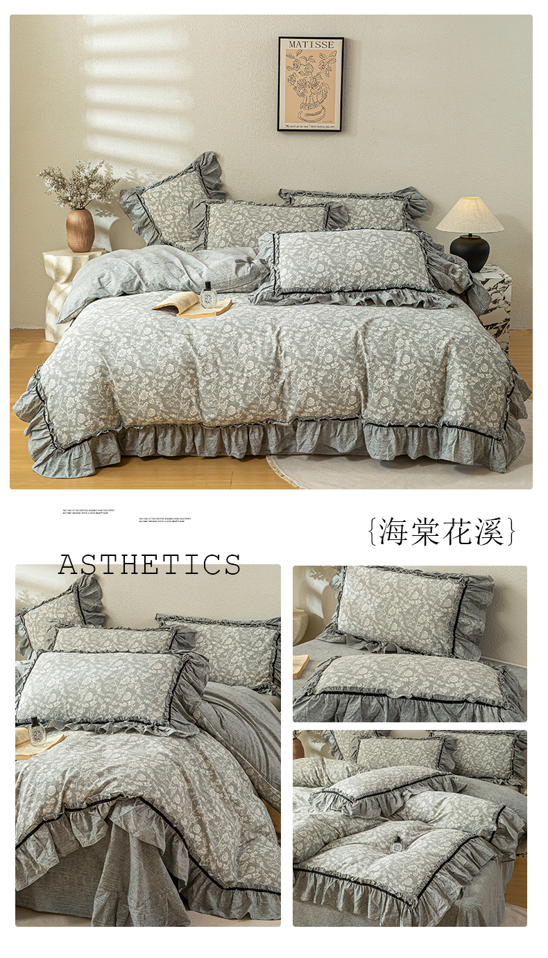(总)大麦家纺 2025新款水洗亚麻花边四件套,粉黛佳人,风木槿咖,浮生花语,海棠花溪,花颜,锦瑟,满园花开,山花浪漫,颂青时,香榭花园,玉茗