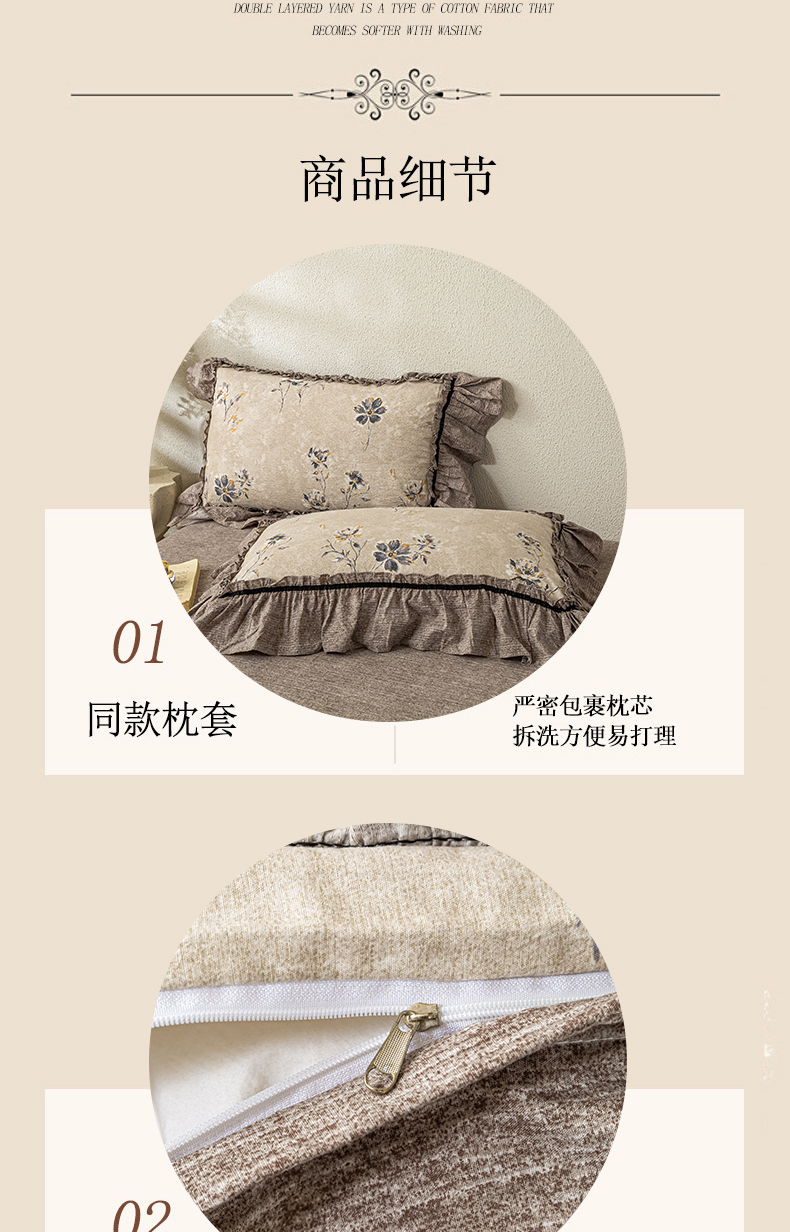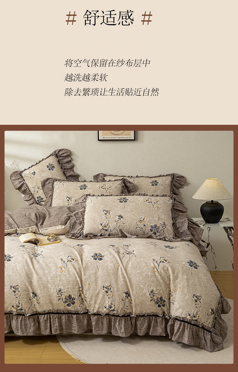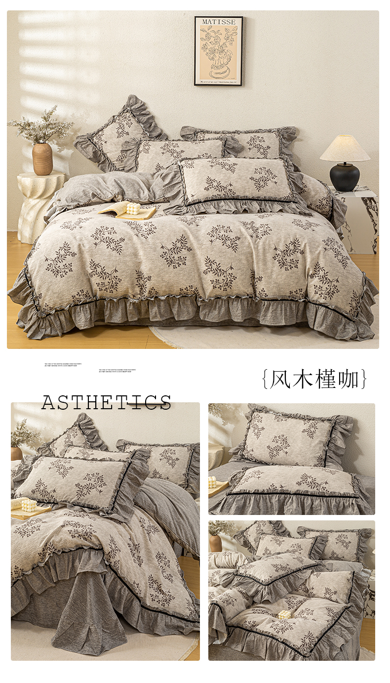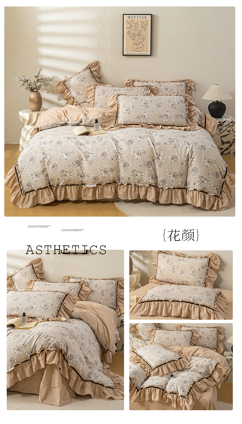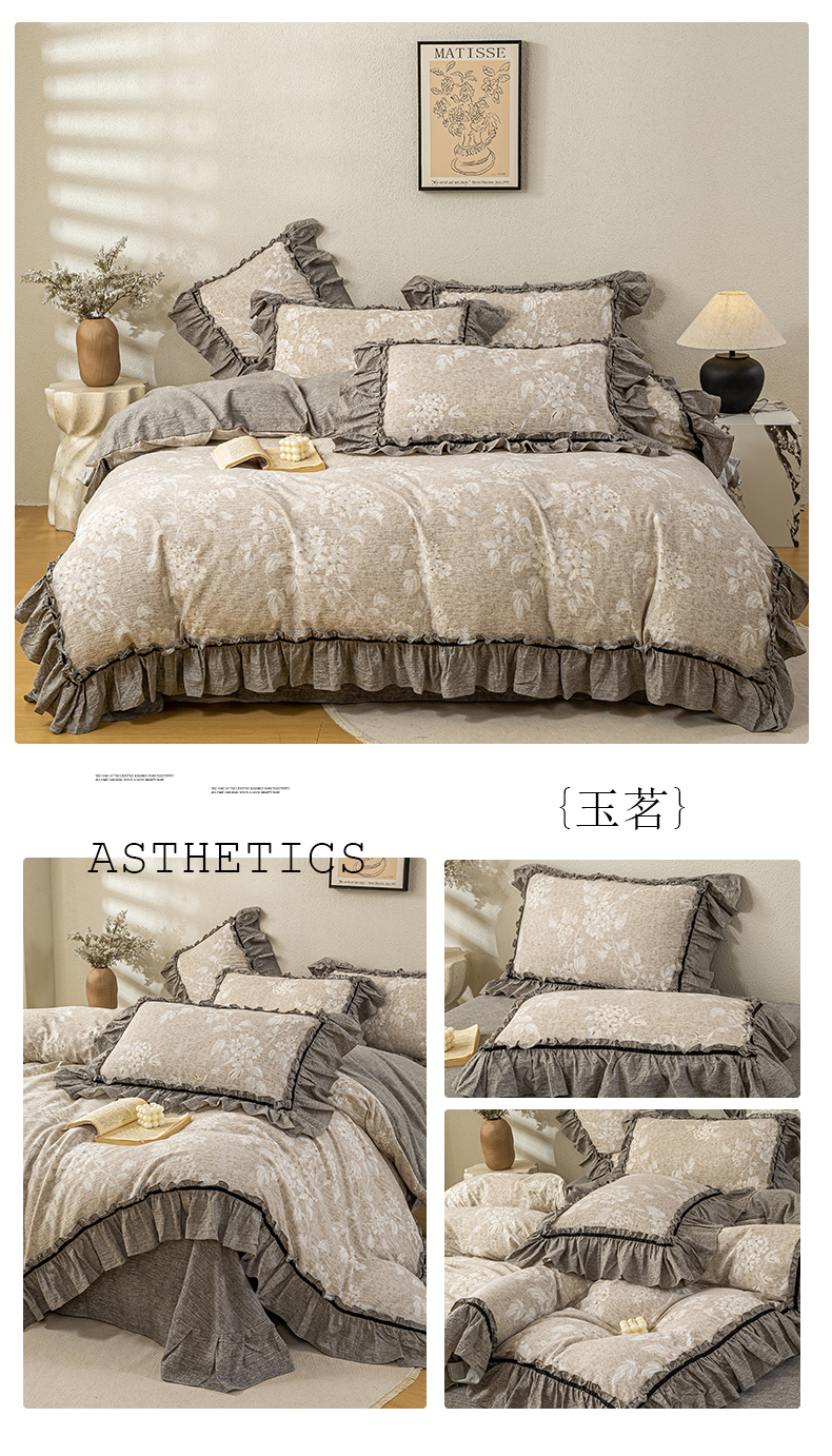 商品名称:大麦家纺 2025新款水洗亚麻花边四件套 玉茗
