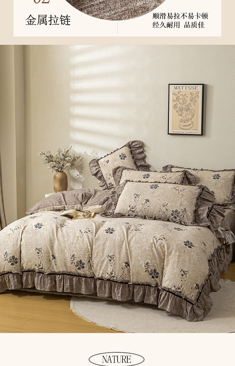 (总)大麦家纺 2025新款牛奶绒印花夹棉花边床盖四件套,蝴蝶紫黛,花漾茶町,花语弥香,云锦茵梦,紫鸢繁花