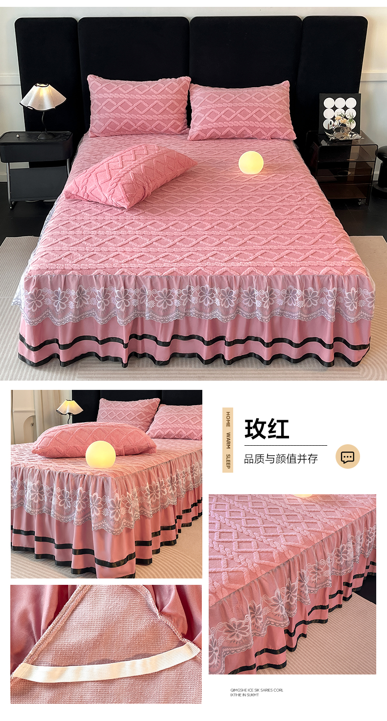 • 91家纺网 家纺一手货源 找家纺 (总)米瑞娜  2025新款塔芙绒雕花蕾丝床裙跨境外贸,白色,宝蓝,果绿,灰色,卡其,蓝灰,玫红,浅紫