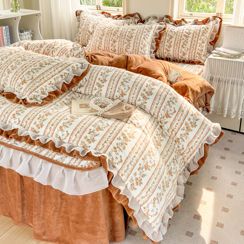 禧缘家纺(原梦想家) 2025新款夹棉双层花边牛奶绒单被套系列 浪漫花开