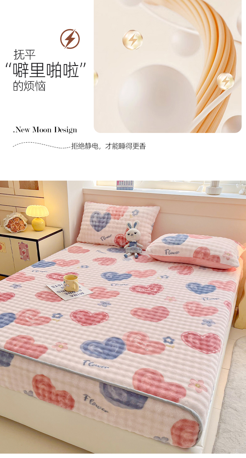 (总) 慕梵 2025雪花绒印花卡通床笠牛奶绒珊瑚绒床罩,爱心兔,波西米亚,彩虹,草莓兔,太空熊,桃子少女,小恐龙,心想事橙,樱桃女孩,爱心樱桃,繁花似锦,嗨皮狗,浪漫花语,绅士熊,泰迪熊,幸运花绿,字母熊,欢乐花朵,恐龙蓝,毛球,小波浪,小萝卜,小南瓜,星星熊,枝繁叶茂