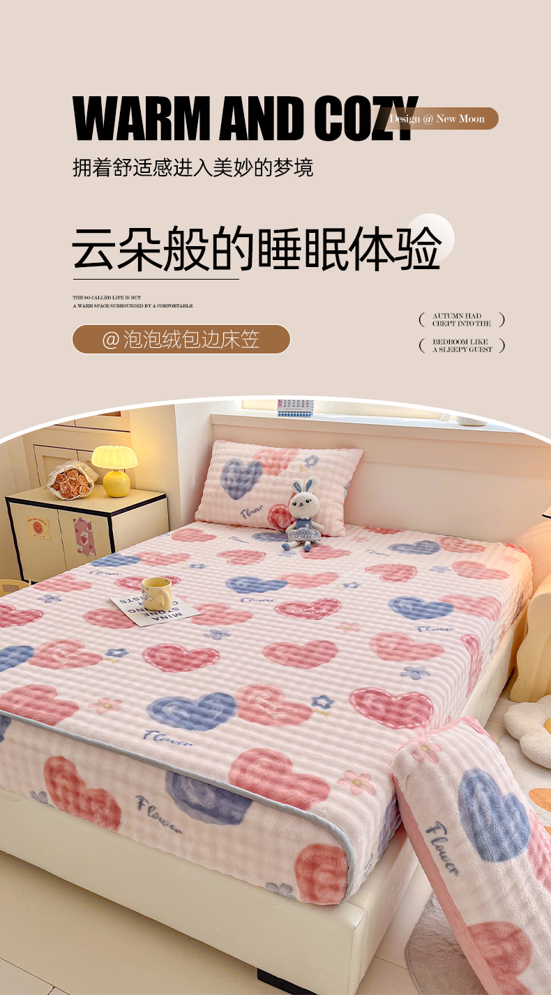 (总) 慕梵 2025雪花绒印花卡通床笠牛奶绒珊瑚绒床罩,爱心兔,波西米亚,彩虹,草莓兔,太空熊,桃子少女,小恐龙,心想事橙,樱桃女孩,爱心樱桃,繁花似锦,嗨皮狗,浪漫花语,绅士熊,泰迪熊,幸运花绿,字母熊,欢乐花朵,恐龙蓝,毛球,小波浪,小萝卜,小南瓜,星星熊,枝繁叶茂