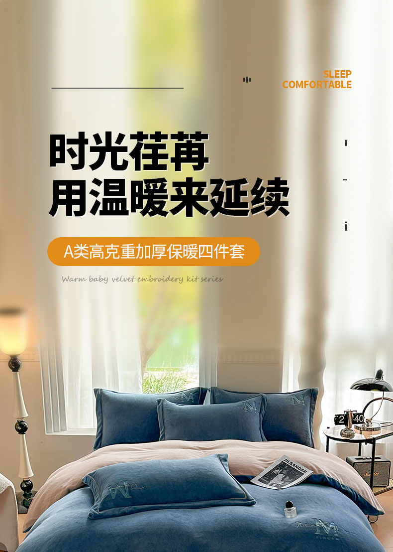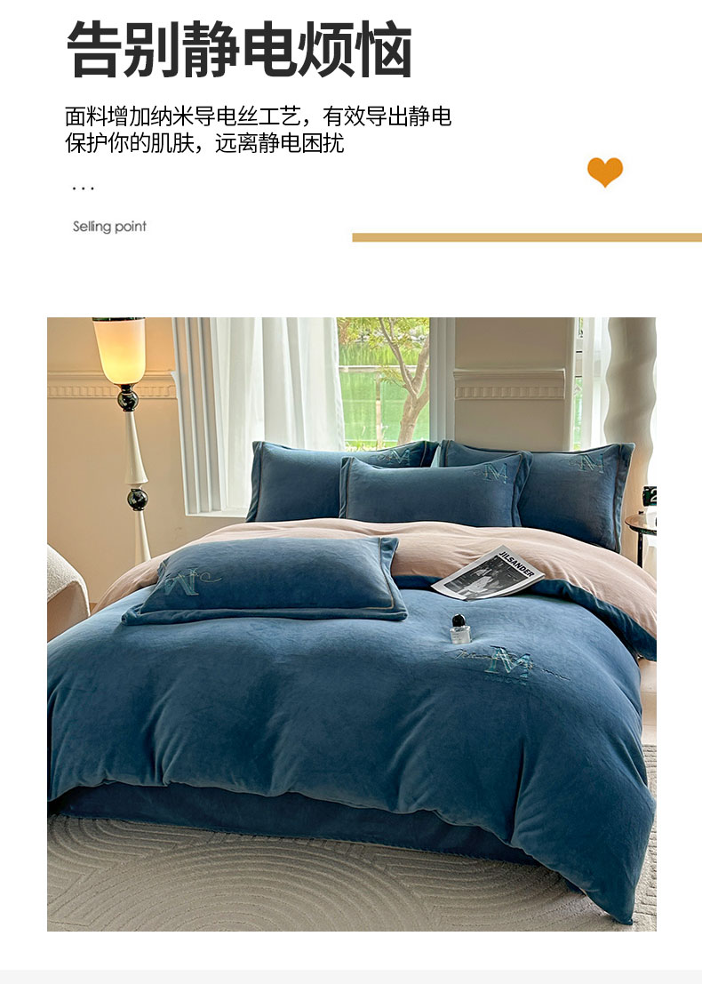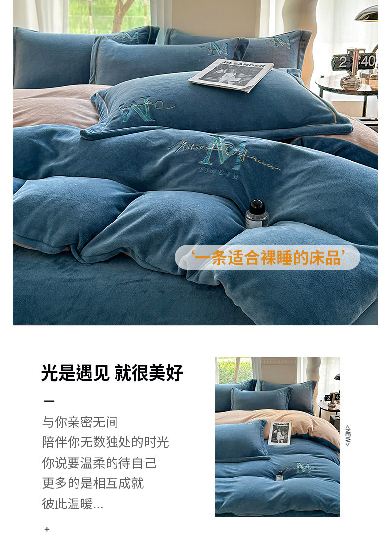 当前位置: 91家纺网 > 商品网购 > 床品套件 > 四件套 > 牛奶绒四件套 > 宇彬家纺 2025新款母婴级牛奶绒婴儿绒刺绣四件套 M款 宾利蓝-香槟