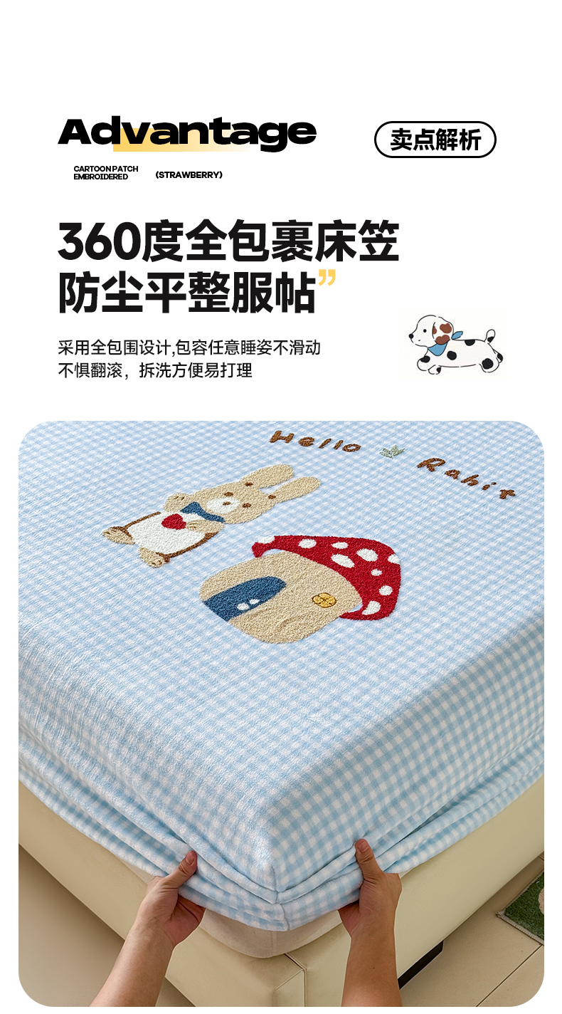 (总)卡罗兰 2025新款200克牛奶绒小清新印花四件套,喜柿,蝴蝶结,可爱汪,爱心熊,字母狗,太阳花,小恐龙,小熊猫,蘑菇,花园兔,可爱熊,亲子熊,知秋,仙草,小樱桃