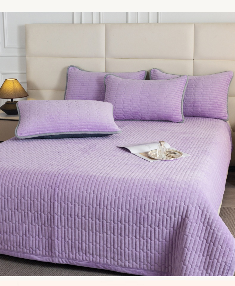 梦莱家纺 2025新款牛奶绒花边单床盖三件套 南瓜爱心