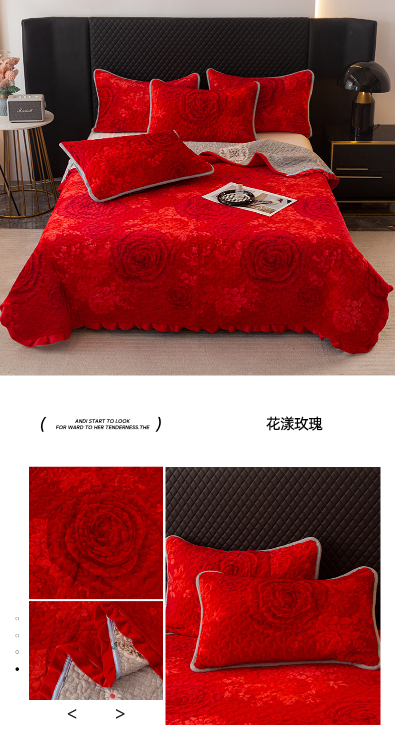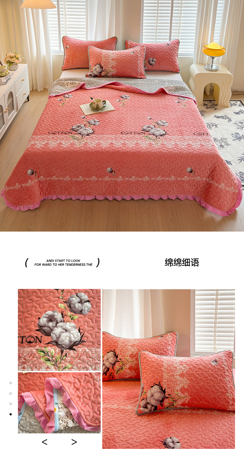 商品名称:梦莱家纺 2025新款牛奶绒花边单床盖三件套 南瓜爱心