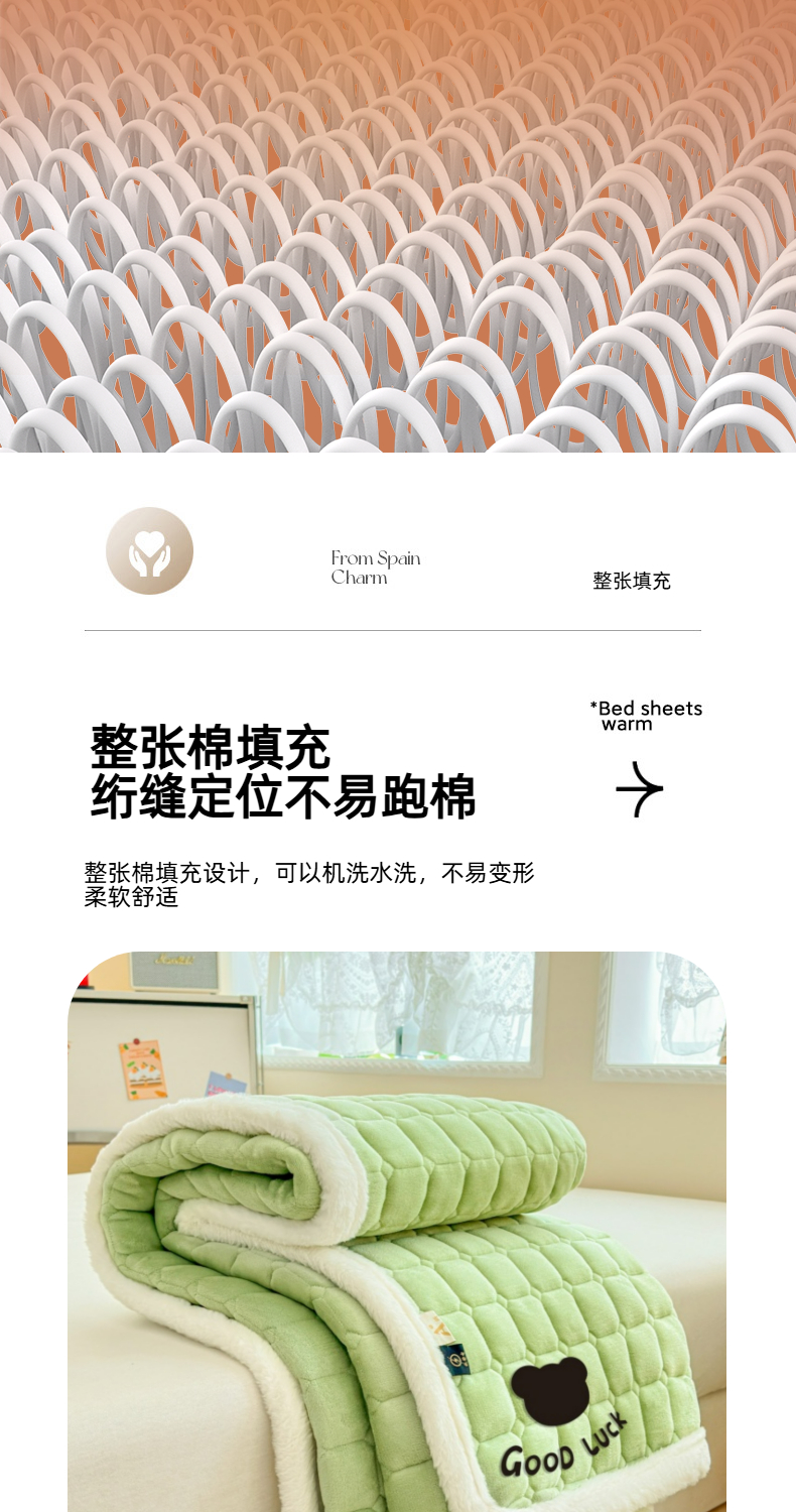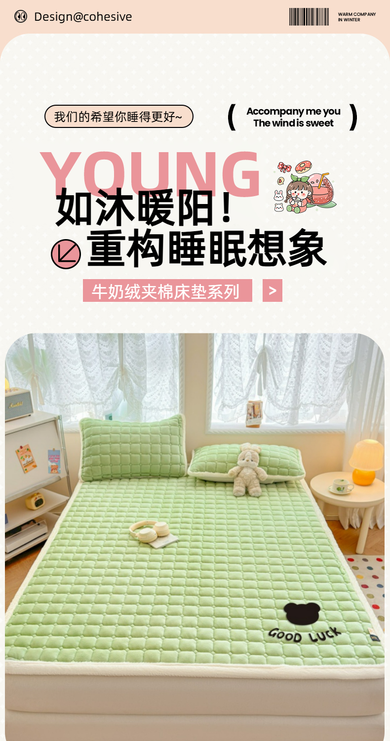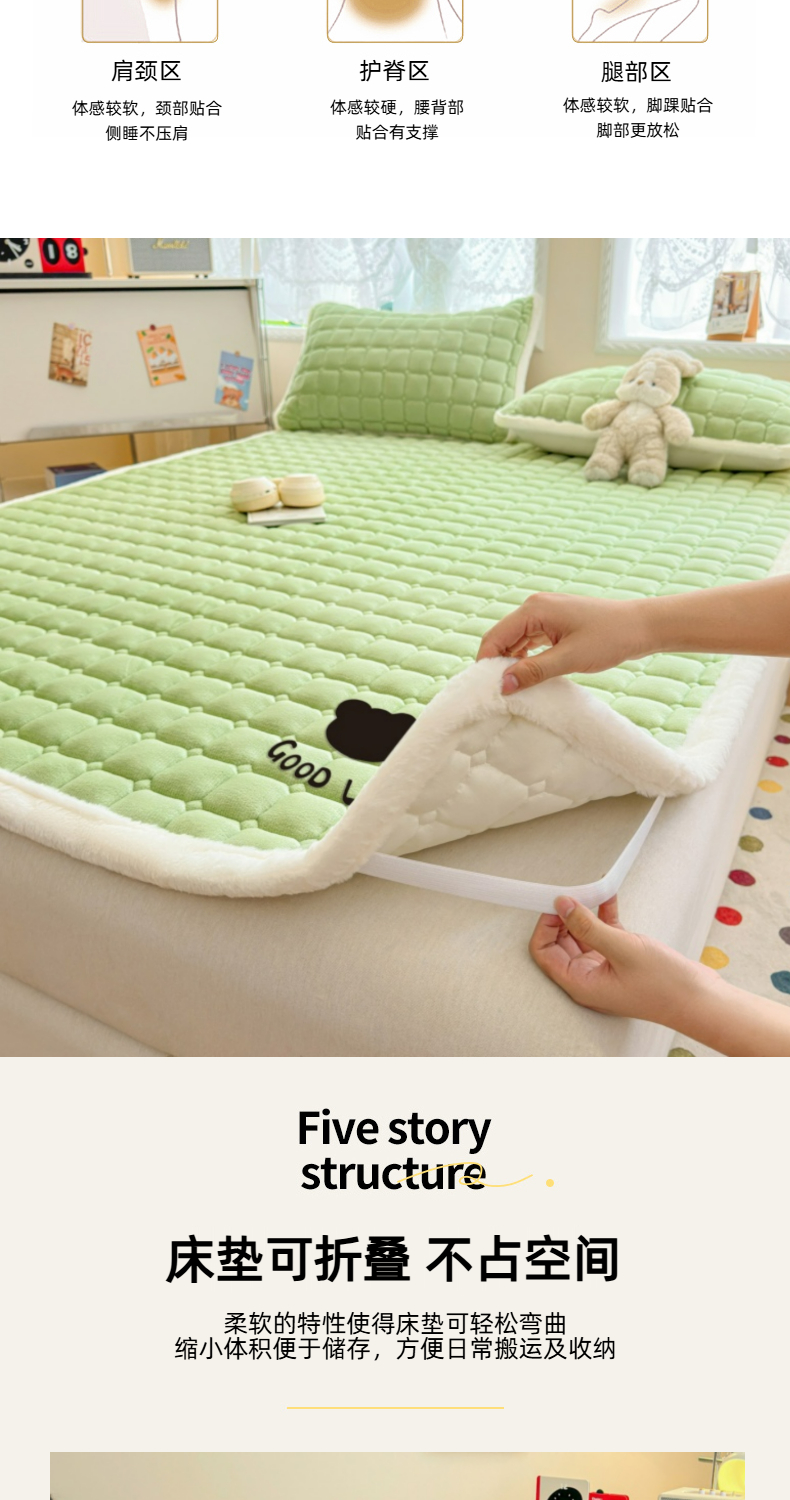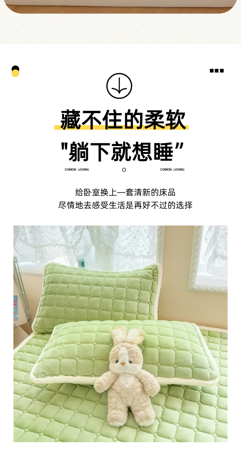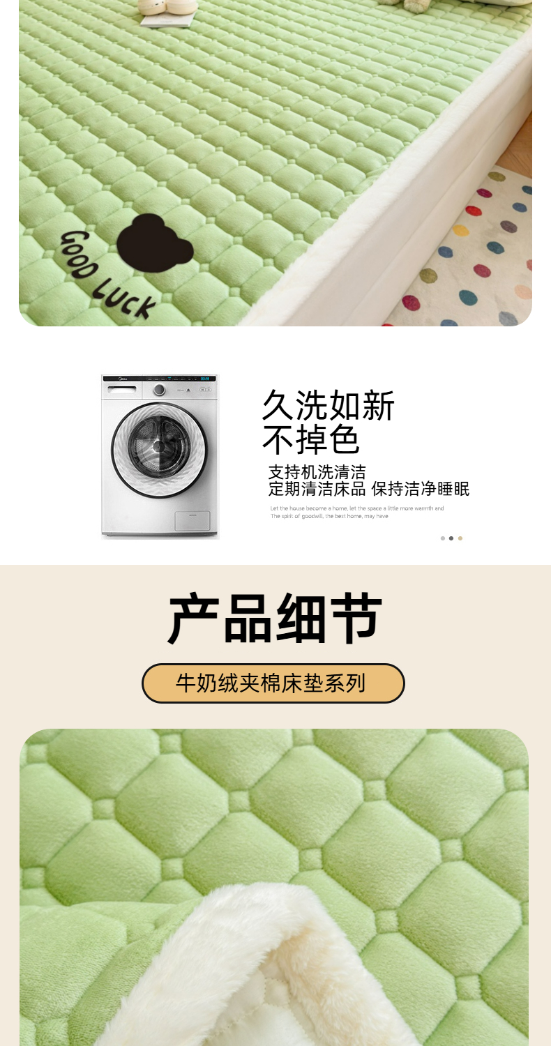 当前位置: 91家纺网 > 商品网购 > 床垫/床褥 > 普通床垫 > 爱屋及屋 2025新款牛奶绒纯色床护垫-好运熊大床系列 草绿