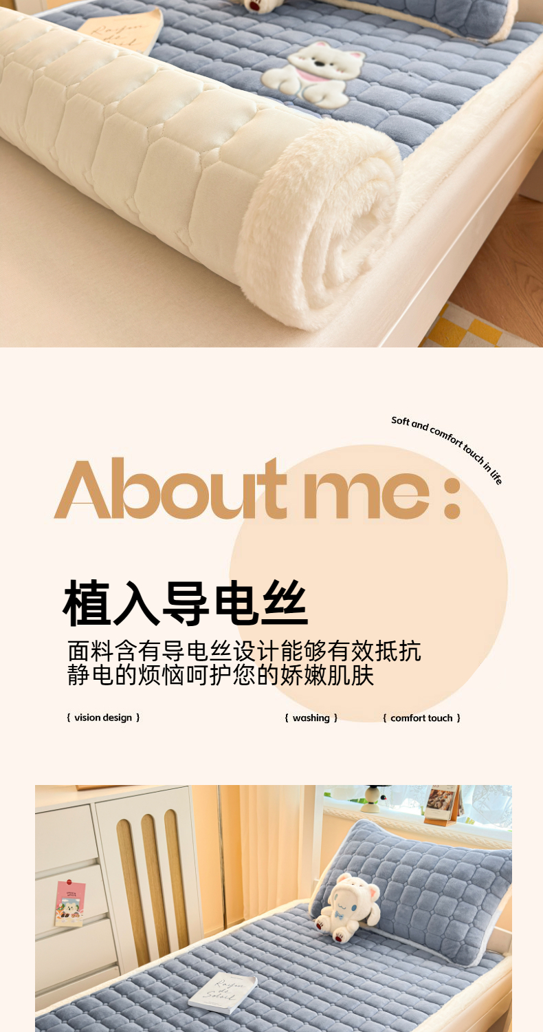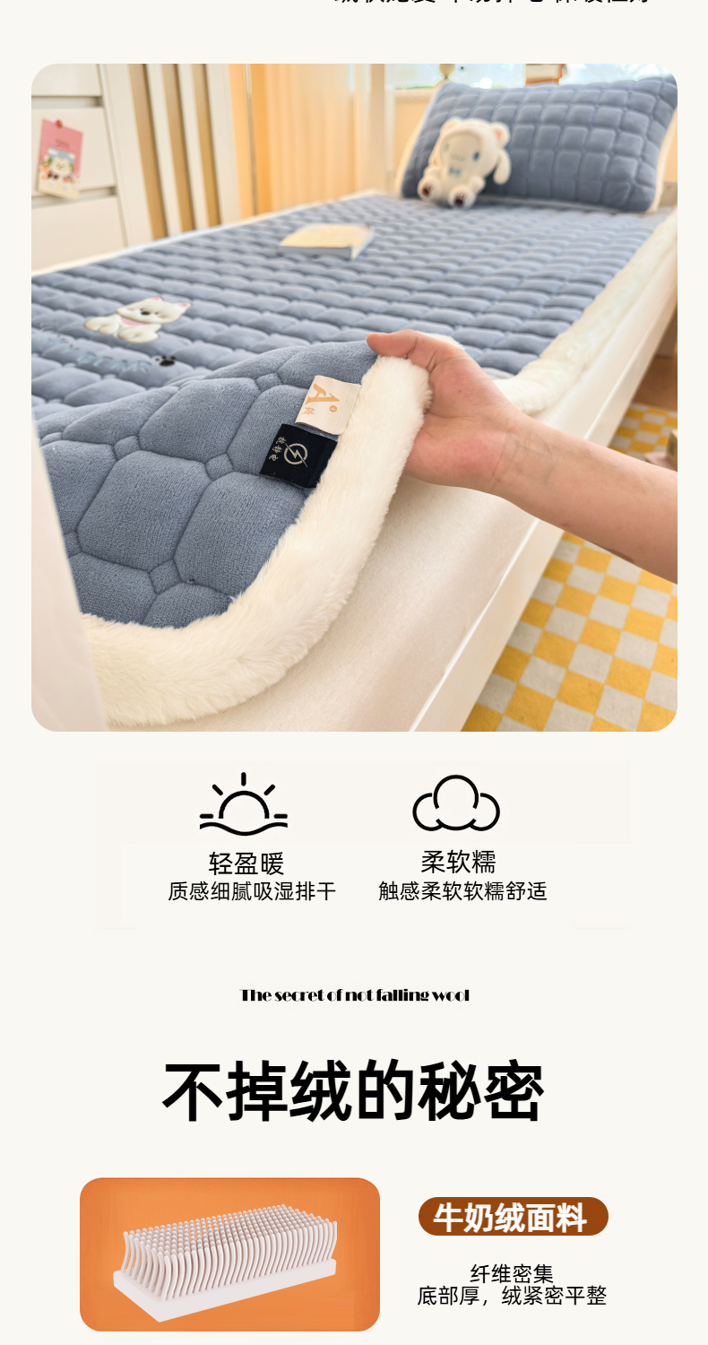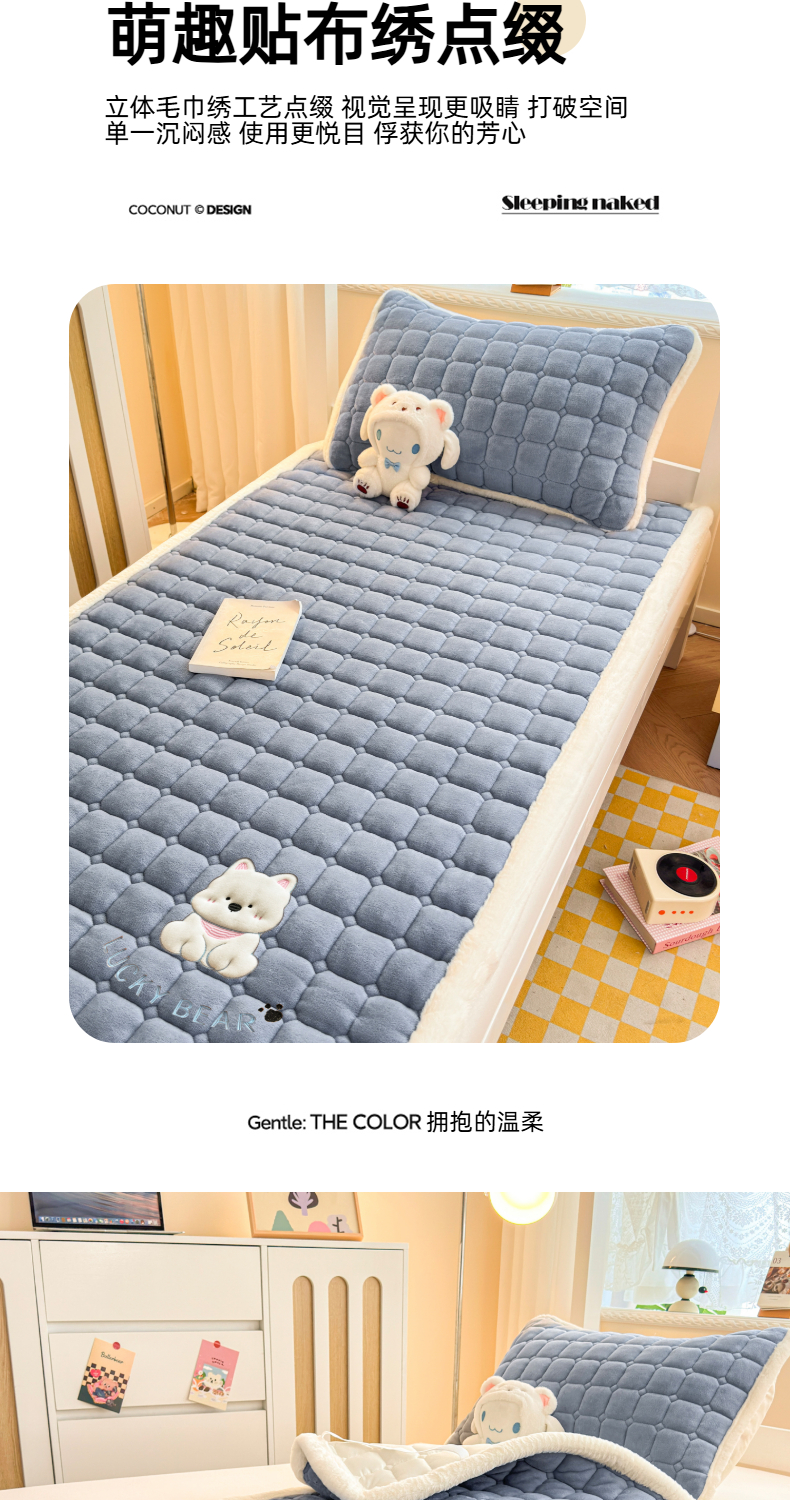 当前位置: 91家纺网 > 商品网购 > 床垫/床褥 > 普通床垫 > 爱屋及屋 2025新款牛奶绒毛巾绣床垫-学生床 luck狗-浅灰