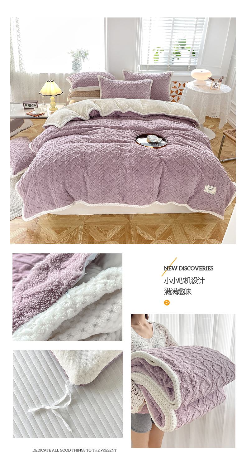 商品名称:(总)雅诗帛 冬季加绒四件套云朵绒法莱绒牛奶绒雕花绒水晶绒塔芙绒毛毯学生宿舍保暖加绒加厚珊瑚绒双面绒