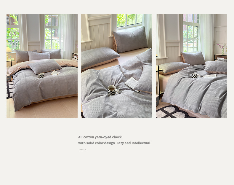 当前位置: 91家纺网 > 商品网购 > 床品套件 > 四件套 > 全棉普通四件套 > 菡宝 2025新款全棉纯棉色织小提花四件套支持定制定做尺寸 大方块灰