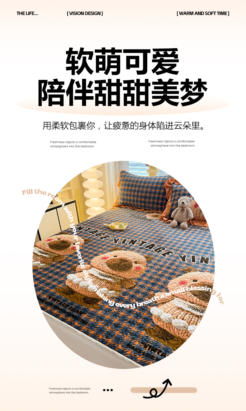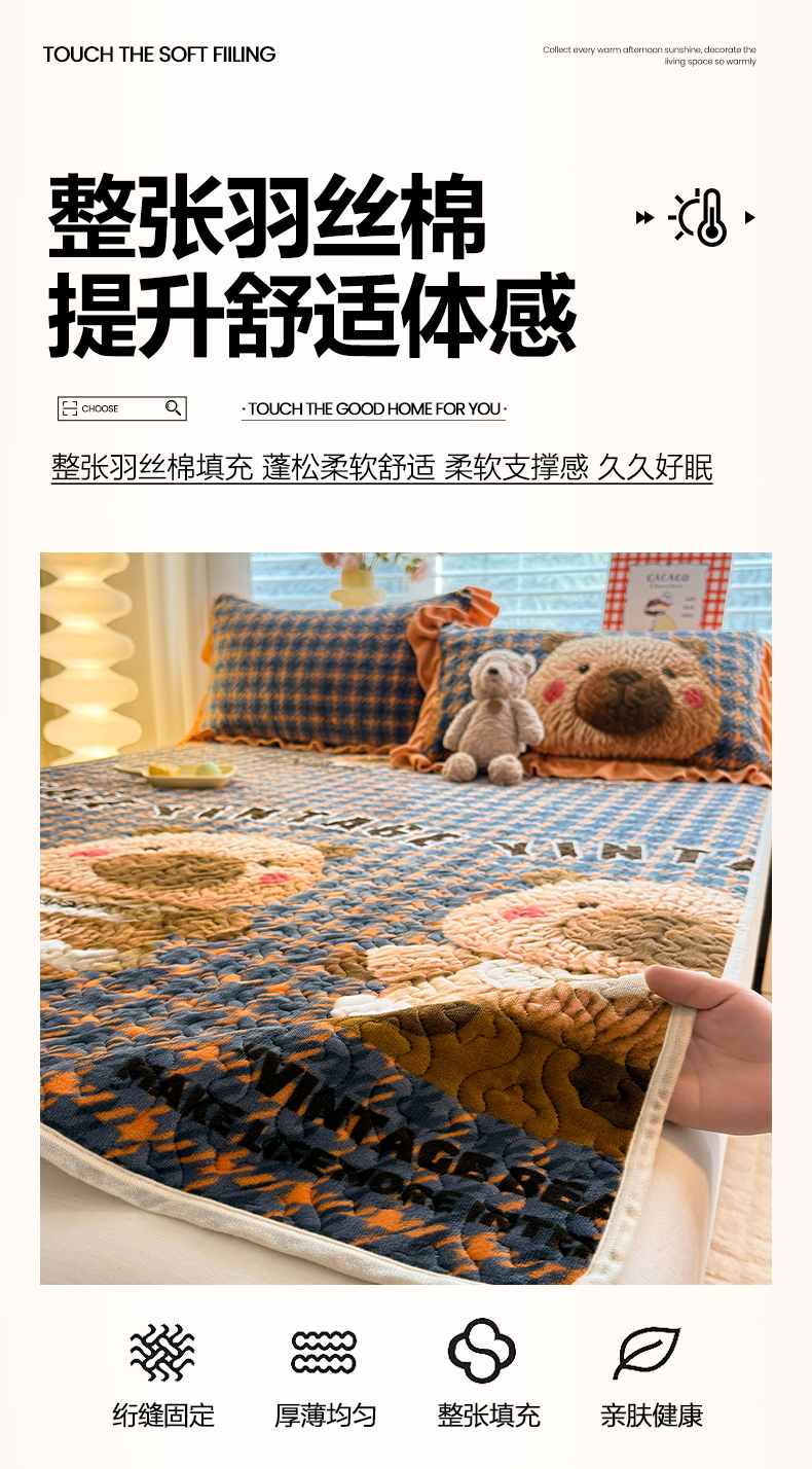 商品名称:美达家纺 2025新款高克重牛奶绒夹棉床垫 格子萌熊