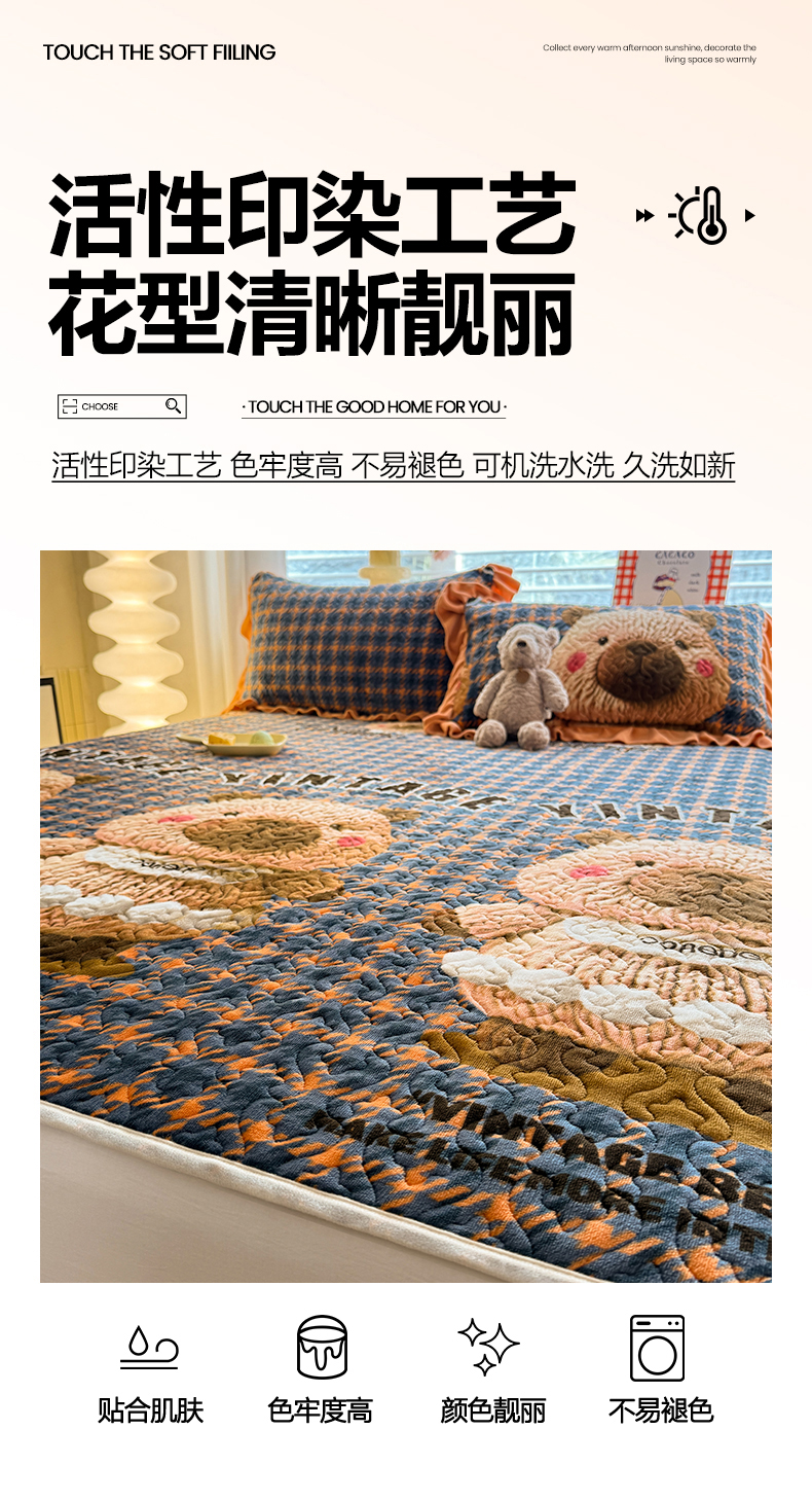 (总)美达家纺 2025新款高克重牛奶绒夹棉床垫,巴拉巴拉,格子萌熊,恐龙星球,梦蝶,时来运转,甜蜜奶吧,微笑熊,针织熊