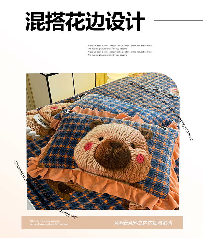 (总)美达家纺 2025新款高克重牛奶绒花边款夹棉床盖三件套,巴拉巴拉,格子萌熊,恐龙星球,梦蝶,时来运转,甜蜜奶吧,微笑熊,针织熊