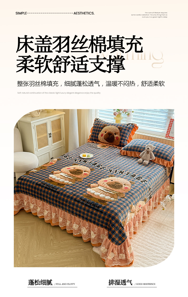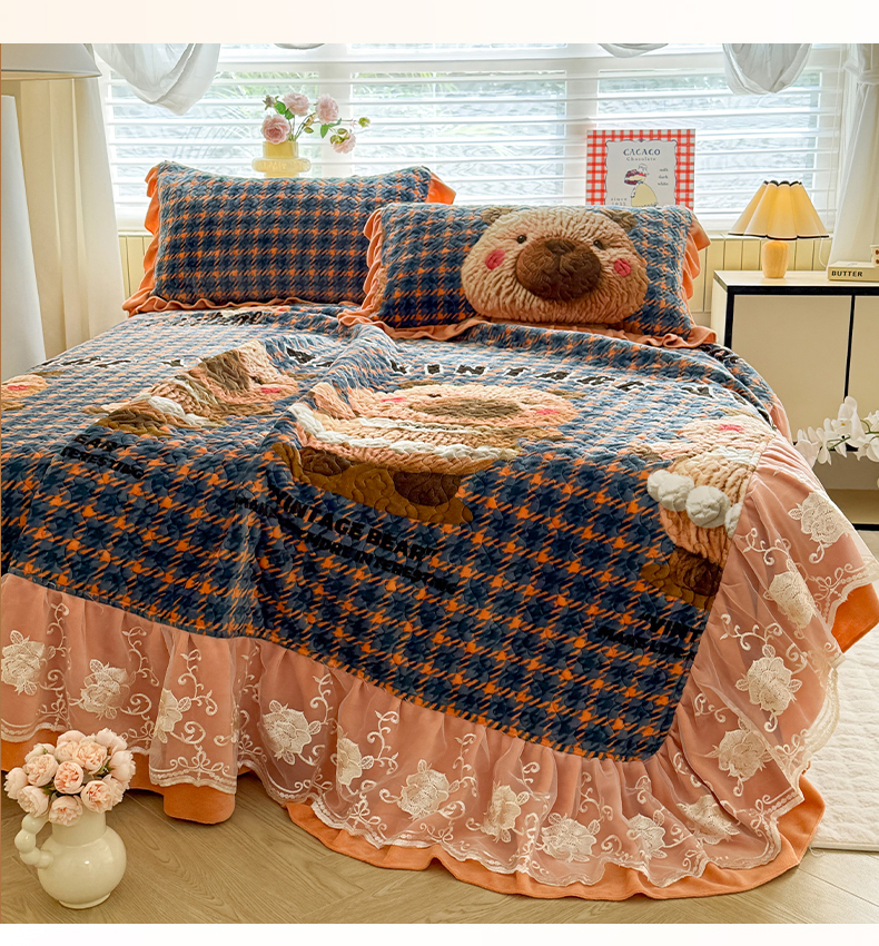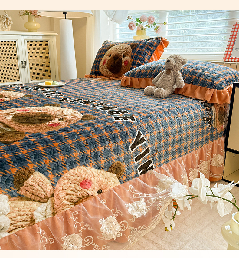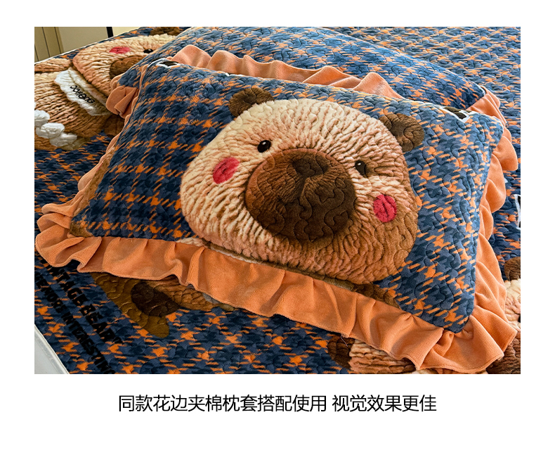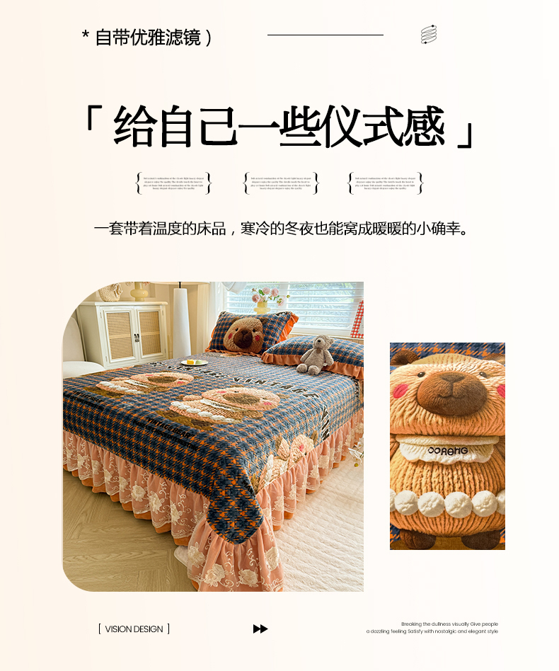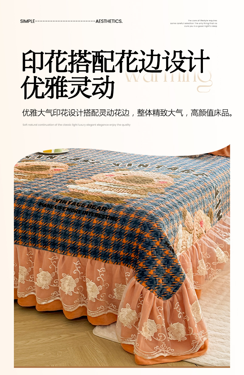 (总)美达家纺 2025新款高克重牛奶绒花边款夹棉床盖三件套,巴拉巴拉,格子萌熊,恐龙星球,梦蝶,时来运转,甜蜜奶吧,微笑熊,针织熊